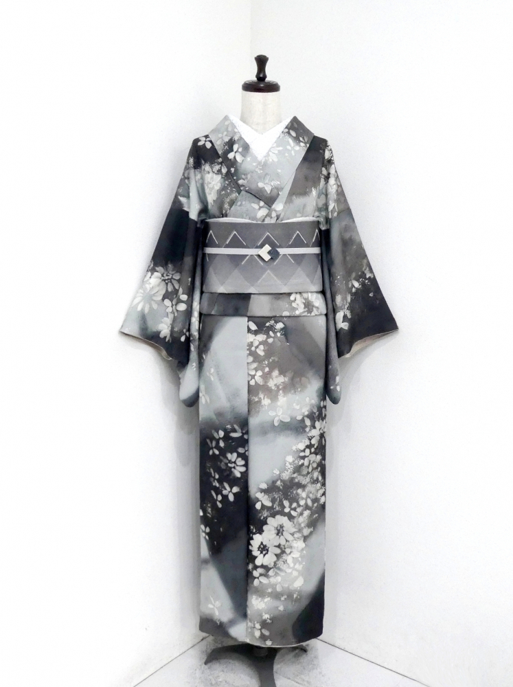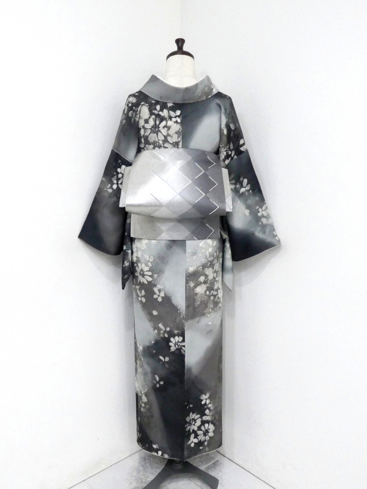 〓雅星〓良品!!グレー系*暈し 花模様♪小紋 正絹袷 裄63.5丈162ロング 販売価格 42,800円 (税込) 購入数 \送料無料/ カートに入れる この商品について問い合わせる お気に入り 特定商取引法に基づく表記 コーディネートで使用している商品 〓雅星〓美品!!シルバーグレイ*ダイヤ グラデーション♪正絹六通《袋帯》 32,800円(税込) ★雅星本店オリジナル★新品!!プラチナ*シマシマ 銀通し 帯揚げ 正絹 【クリックポスト発送】 15,400円(税込) ★雅星本店オリジナル★新品!!プラチナ*帯締め 房付き四分紐 正絹【クリックポスト発送】 13,800円(税込) 商品詳細 状態ランク: ★★★ しなやかな手触りで落ち感の綺麗な正絹地です。 グレー系の暈しにインクを落とした様な花模様があしらわれ幻想的な美しさ。 モノトーンのお着物はサラッと身に纏うだけでモダン且つスタイリッシュな印象に格上げしてくれます。 帯次第でドレスアップorカジュアルダウン自在に楽しめる1枚。 着る人の個性を引き出す、ワンランク上の大人の着こなしに最適な小紋です。 《袷・広衿》身長157〜167cm位までの方にオススメです。 胴裏にシミが見られます。 表地にも点シミがちょこちょこありますが、いずれも軽度なので注意深く見なければ気づかない程度です。 ぐっとお値下げしていますので、色柄を気に入ってくださった方に是非! 着物のみの価格で、帯・小物は含まれておりません。 サイズ・素材 裄 63.5cm 肩身丈 162cm 袖丈 48cm 袖幅 32cm 前幅 23.5cm 後ろ幅 29cm 内揚げ 13cm 縫込み(袖側) 3cm 縫込み(肩側) 4cm 素材 正絹 状態ランクについて ★★★★★ 超美品・新品・未使用品です。 ★★★★ 中古品ですがダメージの無いお品です。 ★★★ 薄ジミなどがありますが着用時には目立ちません。 ★★ 工夫次第で十分着用可能なお買い得品です ★ 大きめのシミがありますので、リメイク材料等にどうぞ。 _mono