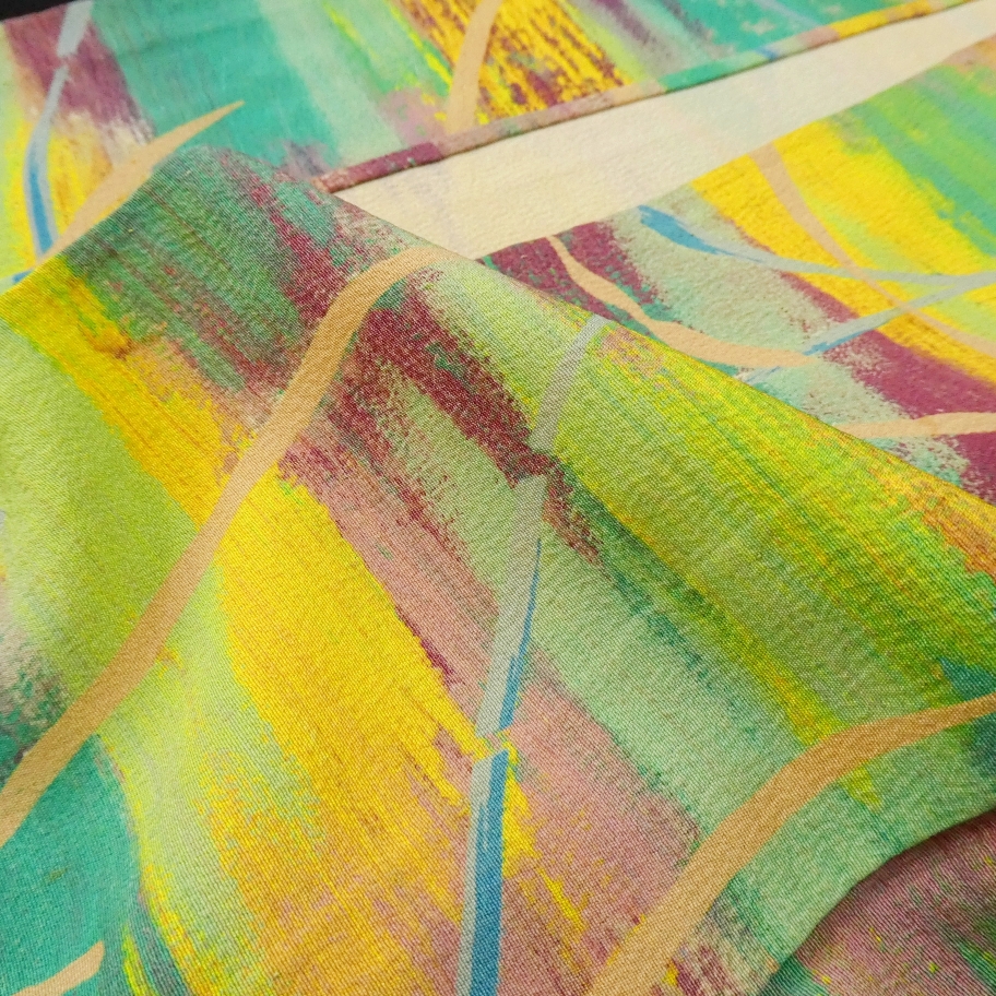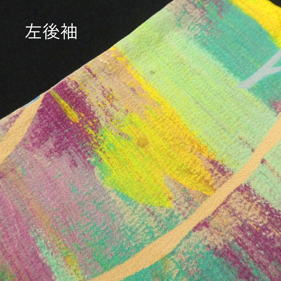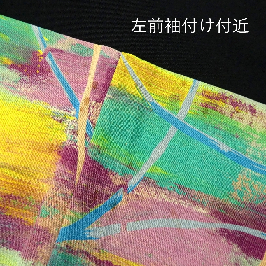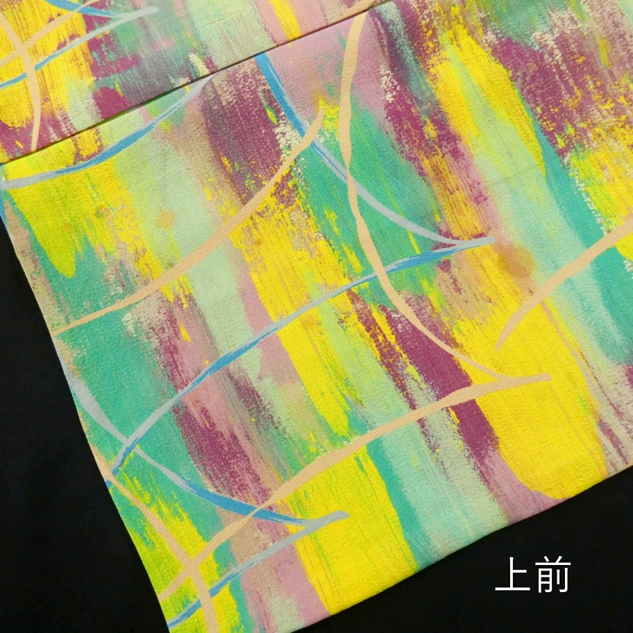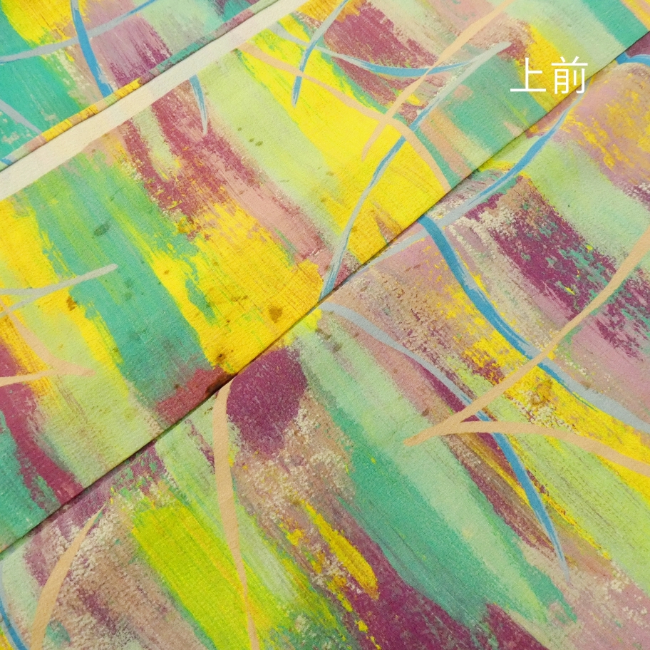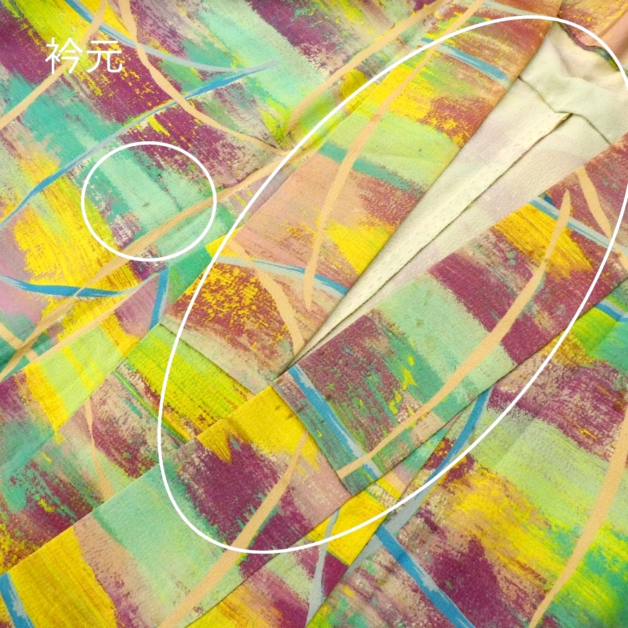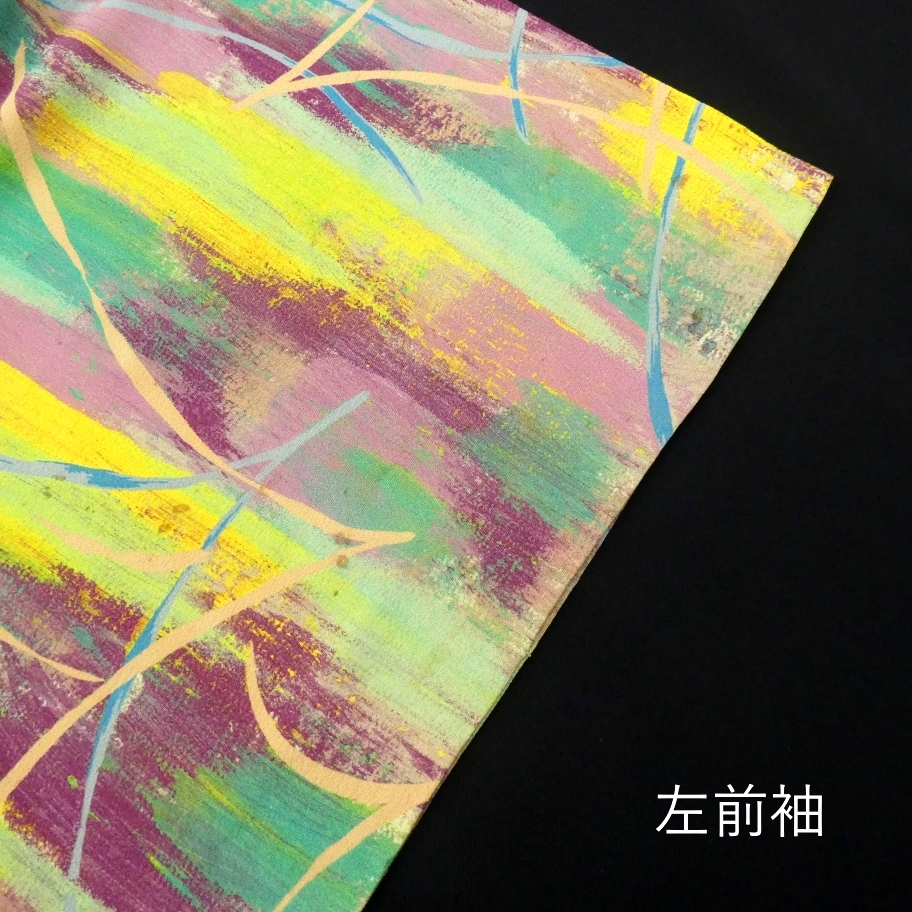 〓雅星〓レトロ!!マルチカラー*刷毛目 アーティ♪小紋 正絹単衣 裄65丈153