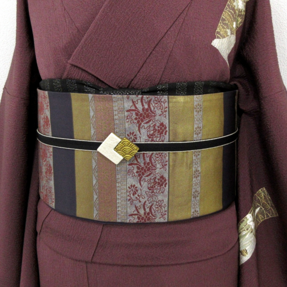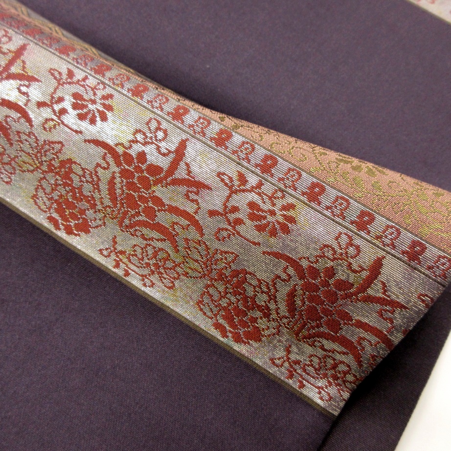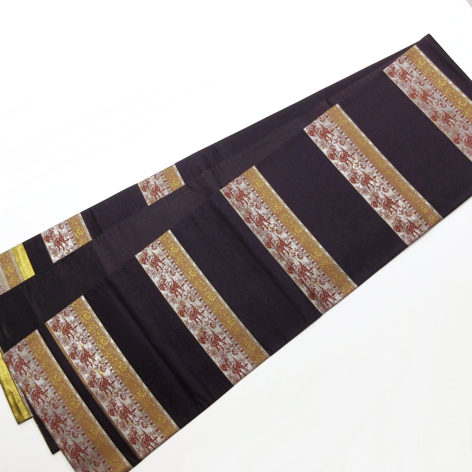黒に近い濃い紫ベース、細かな箔の織り出しが煌びやか。