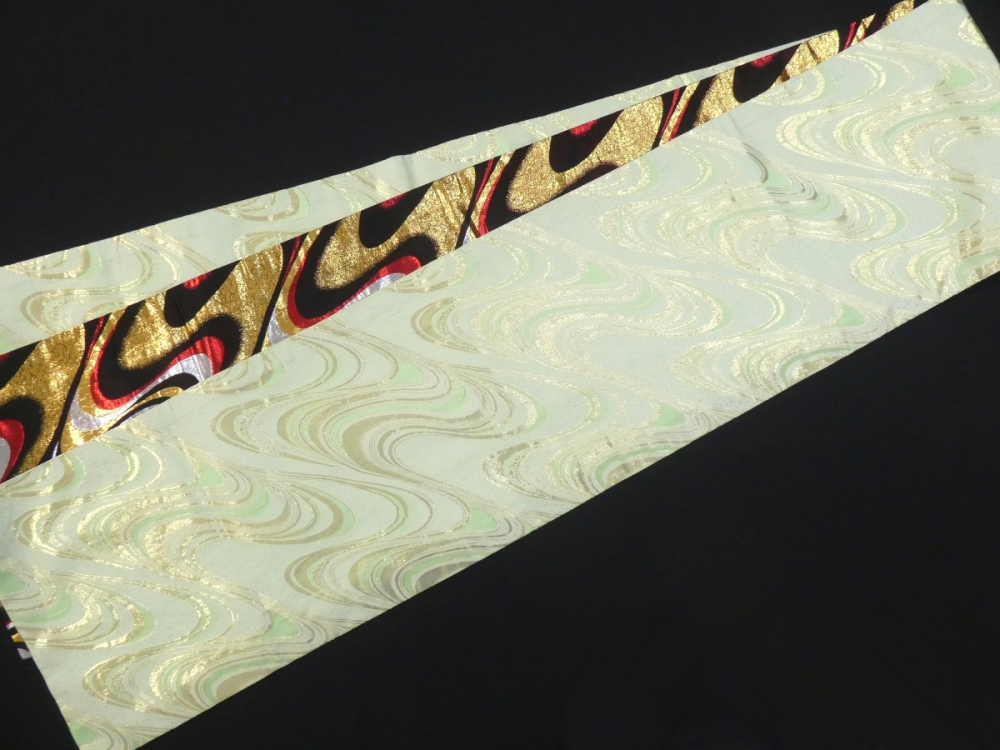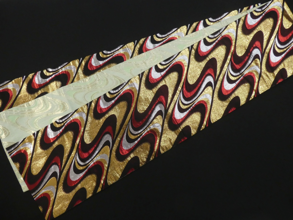 〓雅星〓美品!!ブラック×ペールグリーン*ウェーブ*リバーシブル 正絹全通《袋帯》 販売価格 34,800円 (税込) 購入数 \送料無料/ カートに入れる この商品について問い合わせる お気に入り 特定商取引法に基づく表記 商品詳細 状態ランク: ★★★★ 見た目の重厚感はありますが、薄手のお仕立てなので使いやすい♪ ベースカラーが表裏で異なるリバーシブル仕立て。 両面共大胆な流水文ですがブラックとペーグリーンの全く印象が異なる地色になっています。 振袖はもちろん、フォーマルシーンからパーティコーデまで幅広くお使い頂ける袋帯です。 軽い締め跡を感じますが、目立つシミ・汚れのない綺麗なお品です。 帯のみの価格で、着物・小物は含まれておりません。 サイズ・素材 長さ 30.5cm×497cm 素材 正絹 状態ランクについて ★★★★★ 超美品・新品・未使用品です。 ★★★★ 中古品ですがダメージの無いお品です。 ★★★ 薄ジミなどがありますが着用時には目立ちません。 ★★ 工夫次第で十分着用可能なお買い得品です ★ 大きめのシミがありますので、リメイク材料等にどうぞ。 _fo