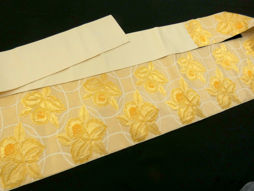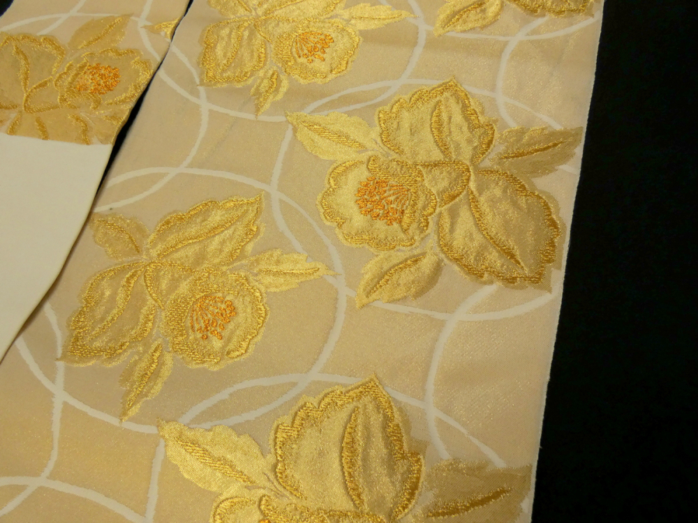 ◆雅星◆良品!!金×白*カトレア 八寸《名古屋帯》 販売価格 14,800円 (税込) 購入数 \送料無料/ カートに入れる この商品について問い合わせる お気に入り 特定商取引法に基づく表記 商品詳細 状態ランク: ★★★ 薄い金ベースにキラキラとした金糸で織り出されたカトレアの花♪ 薄手で軽くしなやかな締め心地です、カジュアルコーデを楽しめる万能な名古屋帯です。 画像の様なシミが見られますが、締めた際には目立ちにくいです。 ダメージの分お安くなっていますので、気にせずご着用いただける方、お買い得です♪ 帯のみの価格で、着物・小物は含まれておりません。 サイズ・素材 長さ 30.5cm×334cm 素材 化繊 状態ランクについて ★★★★★ 超美品・新品・未使用品です。 ★★★★ 中古品ですがダメージの無いお品です。 ★★★ 薄ジミなどがありますが着用時には目立ちません。 ★★ 工夫次第で十分着用可能なお買い得品です ★ 大きめのシミがありますので、リメイク材料等にどうぞ。