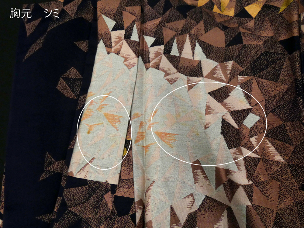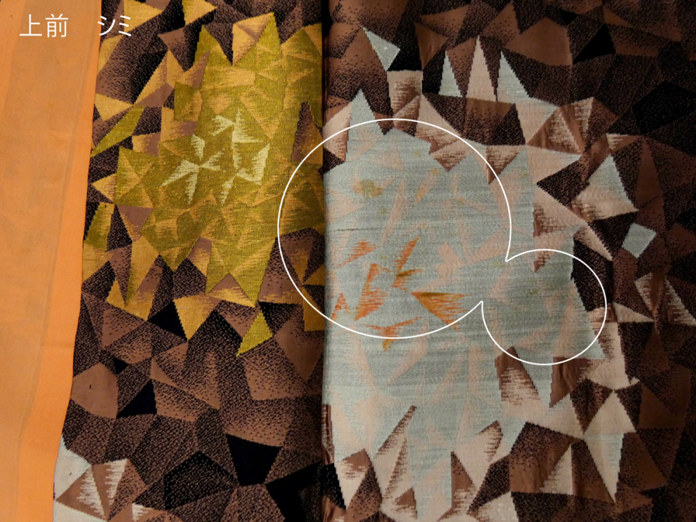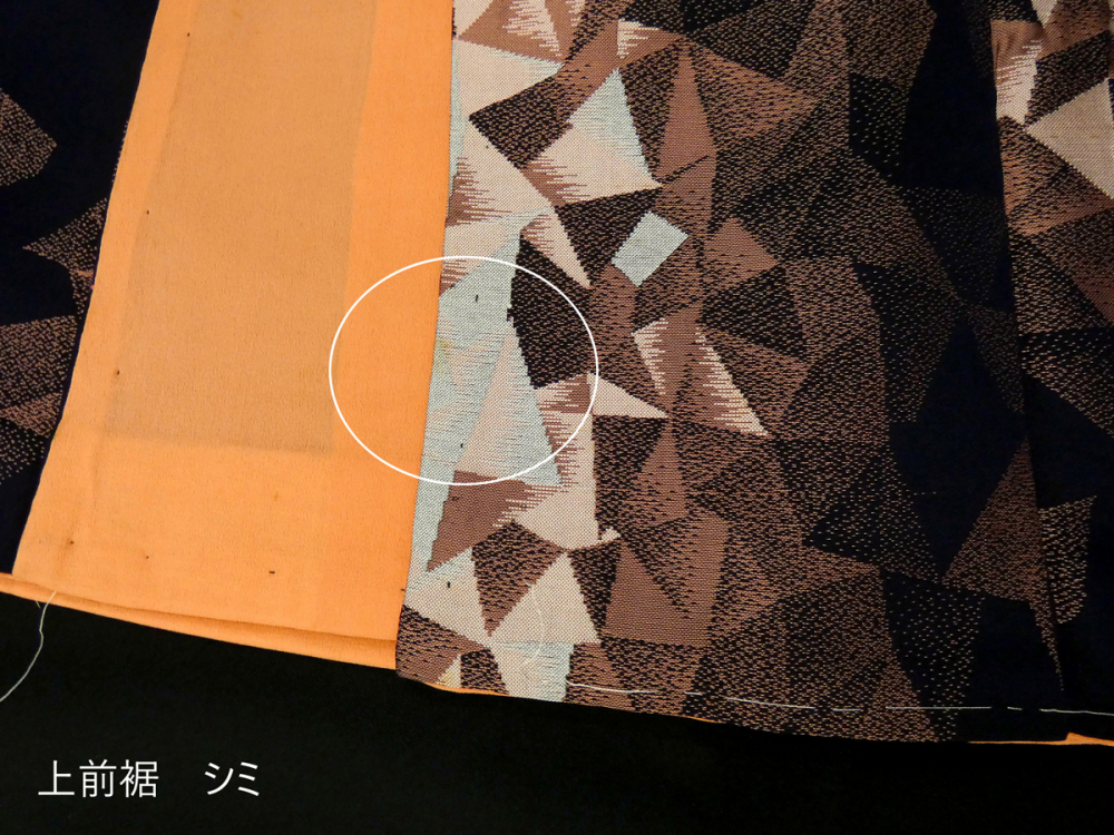 画像の様に全体的に薄シミが見られますが色柄に紛れて目立ちにくく感じました。