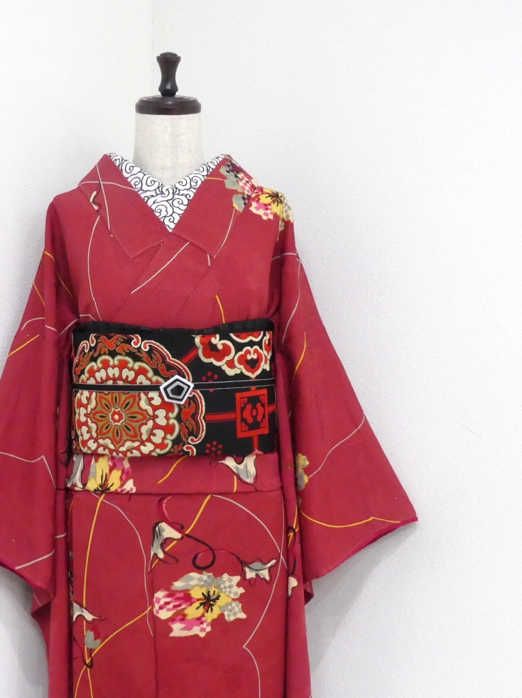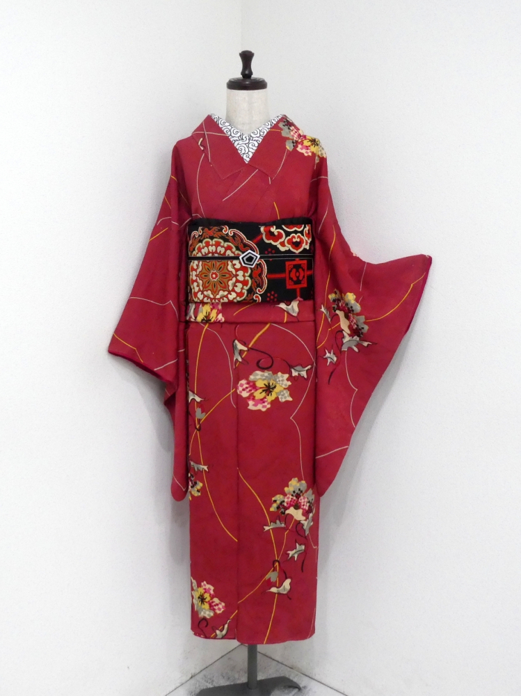 〓雅星〓アンティーク!!ポピーレッド*フラワー♪小紋 正絹袷 裄63丈152 販売価格 27,800円 (税込) 購入数 \送料無料/ カートに入れる この商品について問い合わせる お気に入り 特定商取引法に基づく表記 コーディネートで使用している商品 〓雅星〓レトロ!!ブラック*宝相華文♪正絹六通《本袋帯》 26,800円(税込) ★雅星本店オリジナル★新品!!ブラック*シマシマ 銀通し 帯揚げ 正絹 【クリックポスト発送】 15,400円(税込) ★雅星本店オリジナル★新品*リバーシブル 縁あり三分紐【クリックポスト発送】 6,600円(税込) 商品詳細 状態ランク: ★★★ しなやかな手触りで落ち感の綺麗な正絹地。 ピンクがかっている赤色系ベースに古典風景文の地紋。 ランダムなライン模様にポップな花模様があしらわれた大人可愛いデザインです。 お袖もしゃなりと長く、現代にはない色柄でアンティーク着物の魅力を存分に楽しめる小紋です。 《袷・バチ衿》身長〜157cm位までの方にオススメです。 それ以上の方は対丈や洋服ミックス、ミセル裾除けホムシュヘムなどと合わせても♪ 画像のような薄シミがちょこちょこありますが、いずれも軽度なので着後は全く気になりませんでした◎ 酷く目立つダメージはなくグッドコンディションなお品です。 着物のみの価格で、帯・小物は含まれておりません。 サイズ・素材 裄 63cm 肩身丈 152cm 袖丈 63cm 袖幅 31cm 前幅 26cm 後ろ幅 30.5cm 内揚げ 0cm 縫込み(袖側) 1cm 縫込み(肩側) 0.5cm 素材 正絹 状態ランクについて ★★★★★ 超美品・新品・未使用品です。 ★★★★ 中古品ですがダメージの無いお品です。 ★★★ 薄ジミなどがありますが着用時には目立ちません。 ★★ 工夫次第で十分着用可能なお買い得品です ★ 大きめのシミがありますので、リメイク材料等にどうぞ。 _an