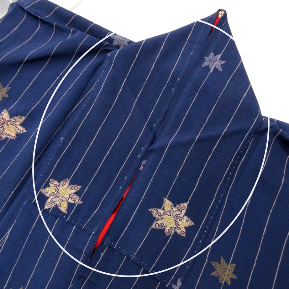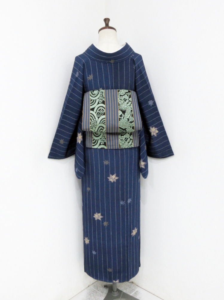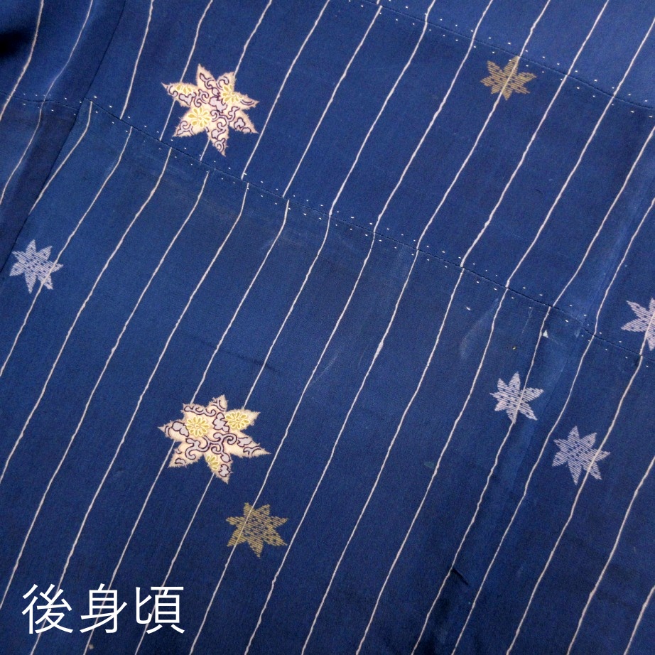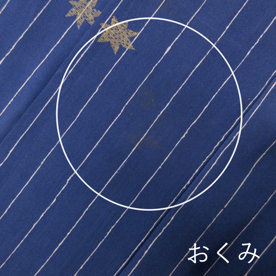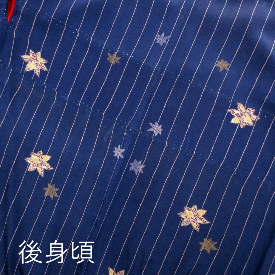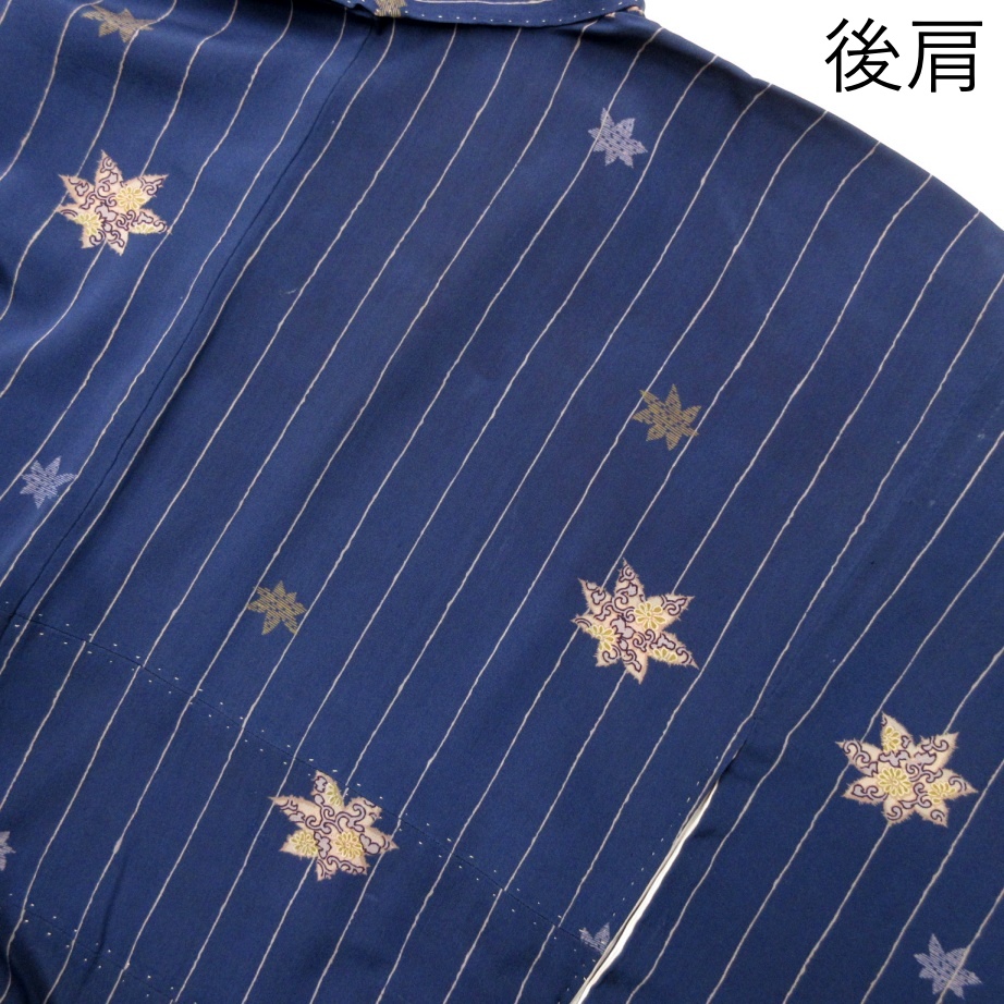 ■雅星■アンティーク!!ネイビー*シマ 紅葉文♪小紋 正絹袷 裄65.5丈166ゆったりロング 販売価格 29,800円 (税込) 購入数 \送料無料/ カートに入れる この商品について問い合わせる お気に入り 特定商取引法に基づく表記 コーディネートで使用している商品 ■雅星■アンティーク!!ブラック×ネイビー*飛雲に龍 宝文♪正絹九寸《名古屋帯》 26,800円(税込) ★雅星本店オリジナル★新品*リバーシブル 縁あり三分紐【クリックポスト発送】 6,600円(税込) 商品詳細 状態ランク: ★★★ しなやかな手触りで落ち感も綺麗。 ネイビーベースに細縞、シックな色合いの紅葉も相まって目を惹くデザインになっています。 大人のアンティークコーデが楽しめるこなれた色柄が素敵です。 ポップな色柄が苦手な方・時代物初心者さんにもおススメなレトロ小紋です。 《袷・広衿》身長161〜171cm位までの方にオススメです。 ☆時代物には珍しいゆったりロング丈の希少品です! 胴継ぎがなされお仕立て直しされております。 スレ・ヤケ・地に紛れたシミ・補修痕等が見られますが、特別濃いシミがないお品なので撮影時は時代感に紛れて気になりませんでした。 アンティーク品に慣れた方でしたら問題ない種類のダメージだと思います。 珍しいサイズのお品ですので、色柄を気に入って下さった方に是非♪ 着物のみの価格で、帯・小物は含まれておりません。 サイズ・素材 裄 65.5cm 肩身丈 166cm 袖丈 49.5cm 袖幅 33cm 前幅 28cm 後ろ幅 30.5cm 内揚げ 0cm 縫込み(袖側) 0cm 縫込み(肩側) 3.5cm 素材 正絹 状態ランクについて ★★★★★ 超美品・新品・未使用品です。 ★★★★ 中古品ですがダメージの無いお品です。 ★★★ 薄ジミなどがありますが着用時には目立ちません。 ★★ 工夫次第で十分着用可能なお買い得品です ★ 大きめのシミがありますので、リメイク材料等にどうぞ。 _an