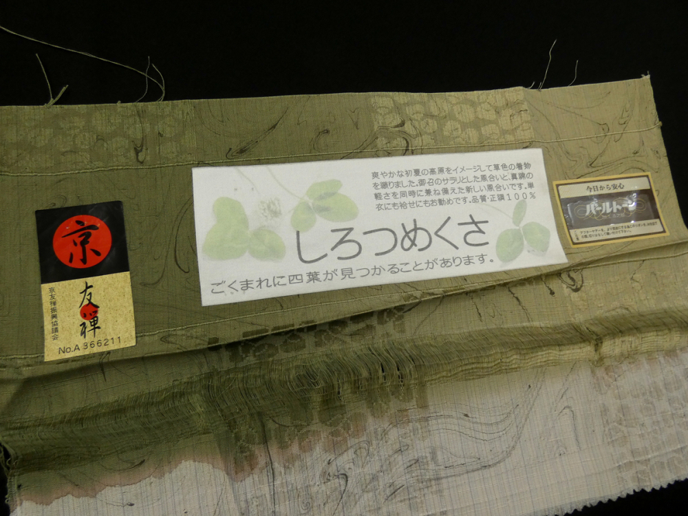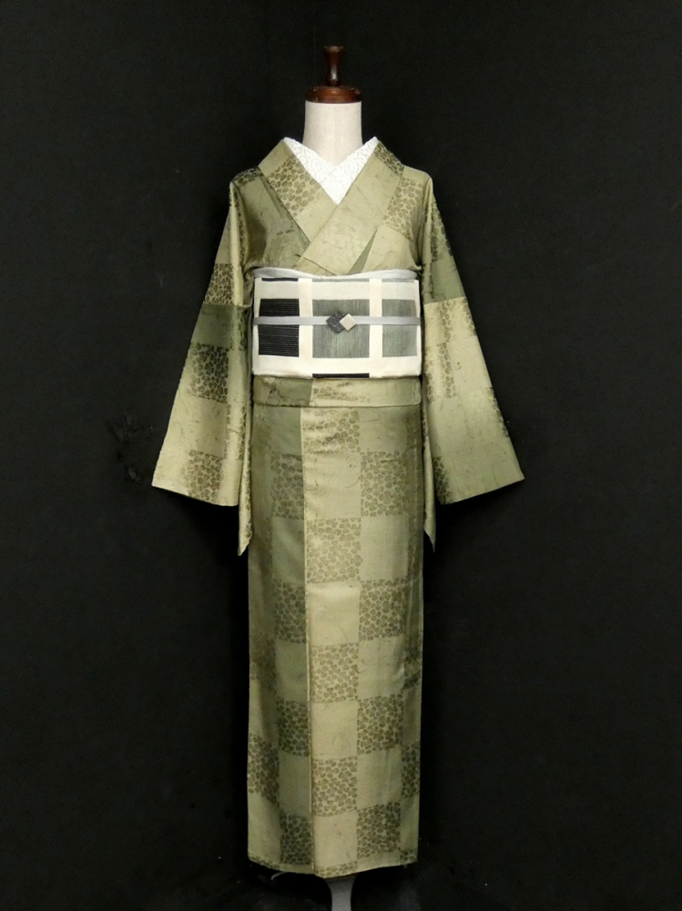 ◆雅星◆超美!!緑暈し*しろつめくさ 墨流し 小紋 正絹胴抜き 裄69丈165スリムロング 販売価格 54,800円 (税込) 購入数 \送料無料/ カートに入れる この商品について問い合わせる お気に入り 特定商取引法に基づく表記 コーディネートで使用している商品 ◆雅星◆超美!!白地*スクエア 正絹六通《洒落袋帯》 37,800円(税込) ★雅星本店オリジナル★新品!!プラチナ*シマシマ 銀通し 帯揚げ 正絹 【クリックポスト発送】 15,400円(税込) ★雅星本店オリジナル★新品!!プラチナ*帯締め 房付き四分紐 正絹【クリックポスト発送】 14,800円(税込) 商品詳細 状態ランク: ★★★★ さらりと軽い正絹地に沢山の三つ葉のクローバーの地紋、 よく見ると一つだけ四つ葉のクローバーが隠れています♪ スモーキーグリーンの暈しの地に京友禅の墨流し模様が上品♪ 肩裏のない胴抜き仕立てで涼しい♪ 人と差のつくワンランク上の大人の普段着に最適な小紋です。 《袷・広衿》身長160〜170cm位までの細身の方にオススメです。 それ以上の方はミセル裾除けホムシュヘムなどと合わせても♪ シミ・汚れのない超美品です! 着物のみの価格で、帯・小物は含まれておりません。 サイズ・素材 裄 69cm 肩身丈 165cm 袖丈 49cm 袖幅 34.5cm 前幅 22.5cm 後ろ幅 28cm 内揚げ 12cm 縫込み(袖側) 1cm 縫込み(肩側) 1cm 素材 正絹 状態ランクについて ★★★★★ 超美品・新品・未使用品です。 ★★★★ 中古品ですがダメージの無いお品です。 ★★★ 薄ジミなどがありますが着用時には目立ちません。 ★★ 工夫次第で十分着用可能なお買い得品です ★ 大きめのシミがありますので、リメイク材料等にどうぞ。