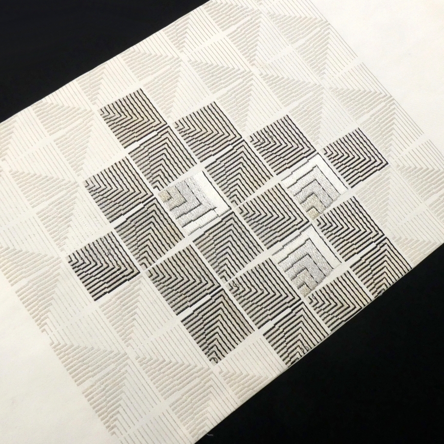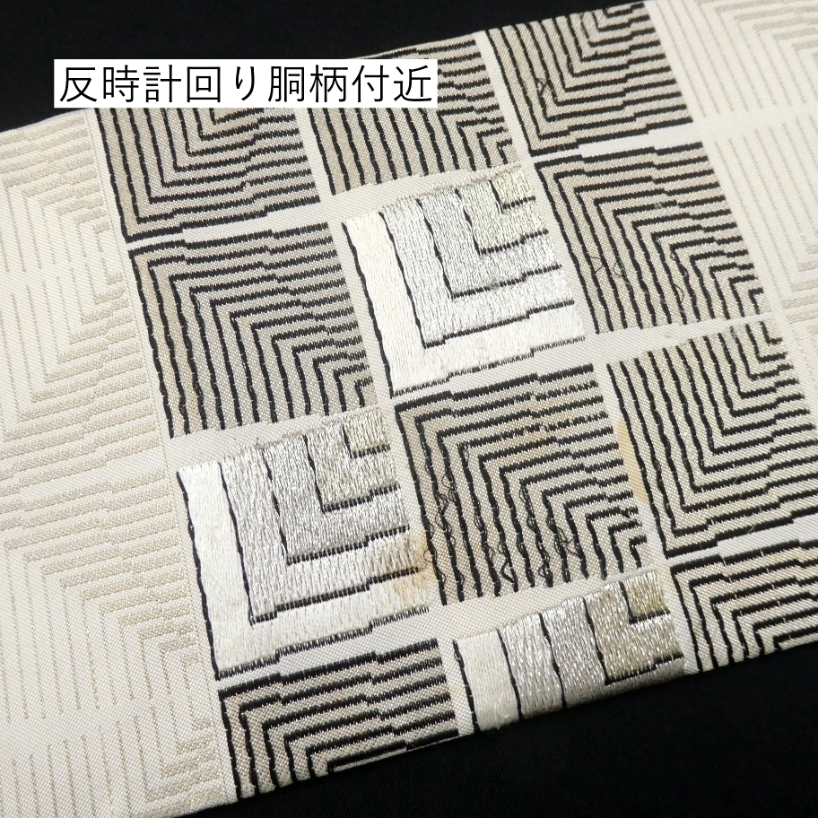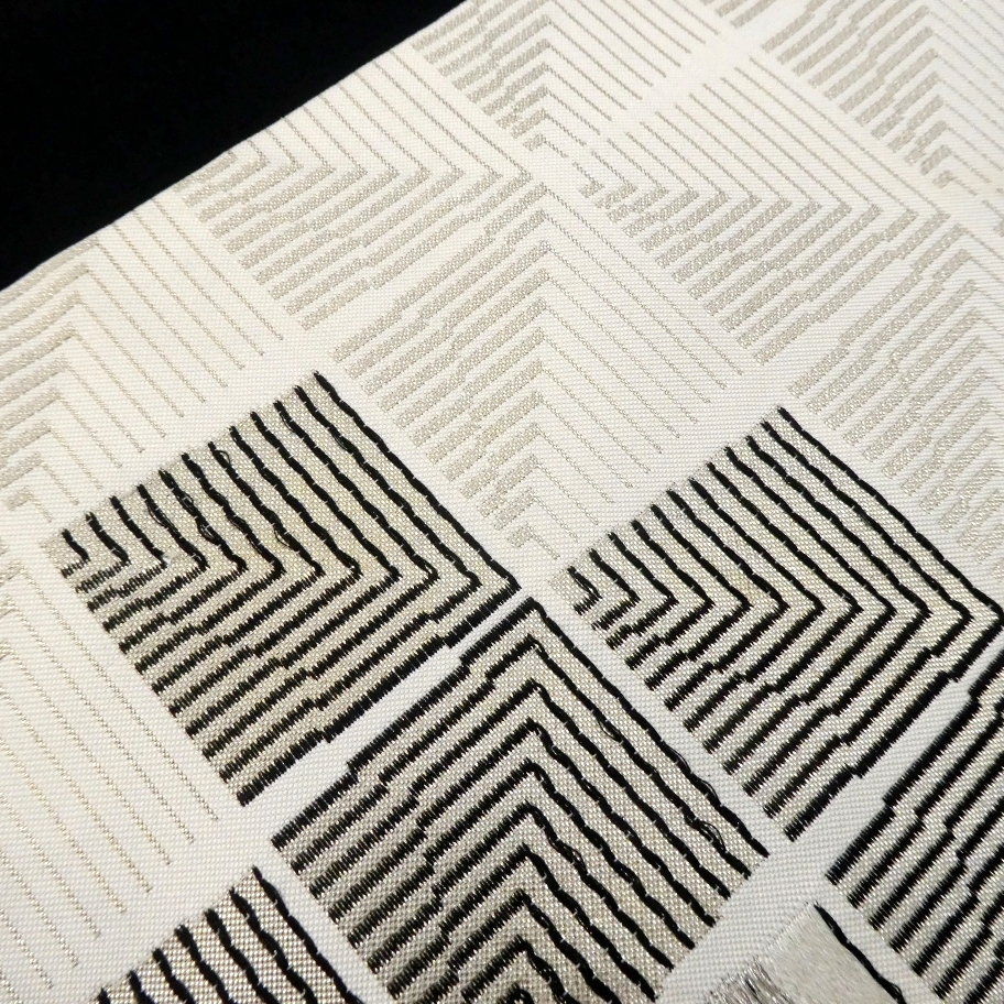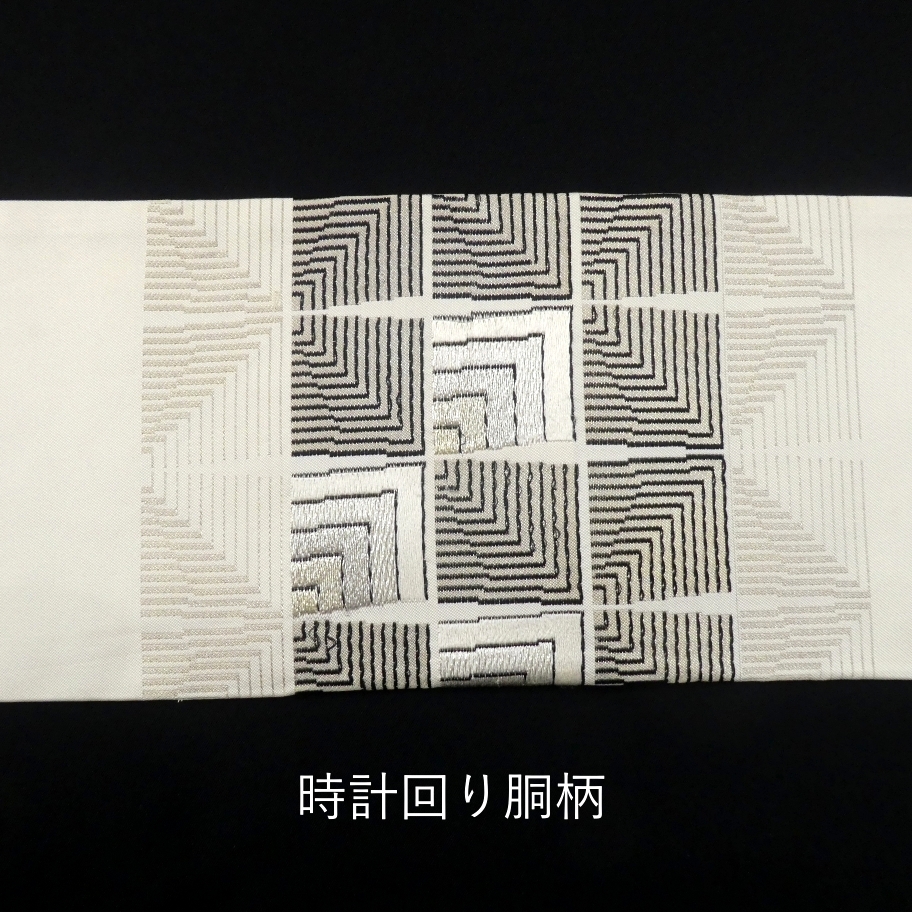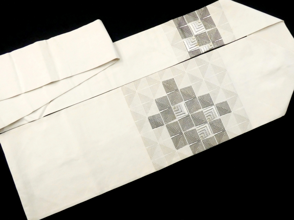 〓雅星〓良品!!アイボリー*スクエア モノトーン♪正絹九寸《名古屋帯》