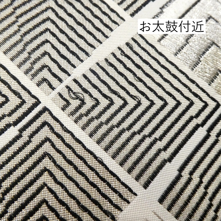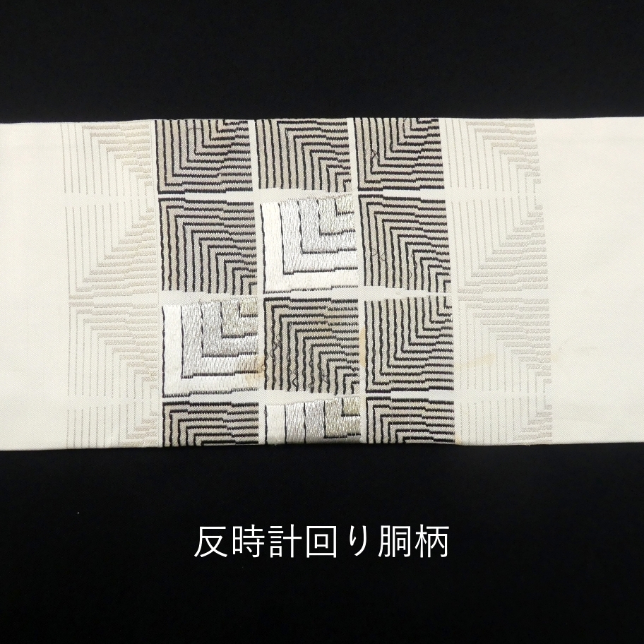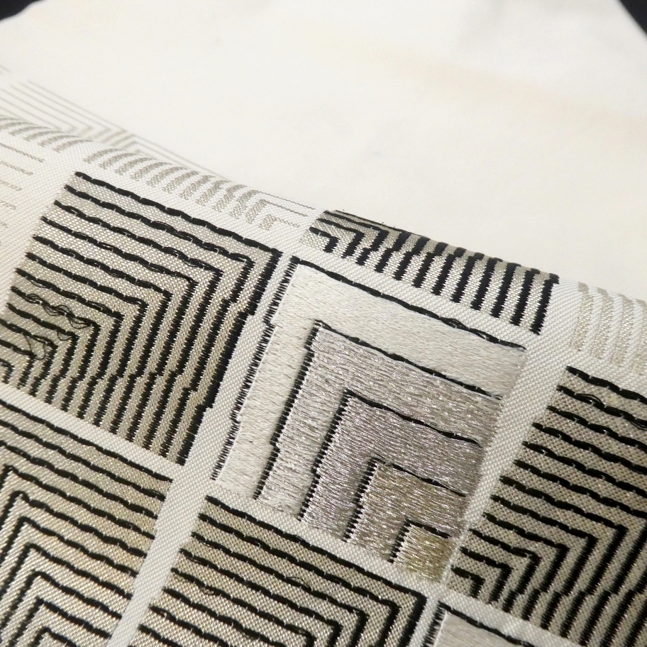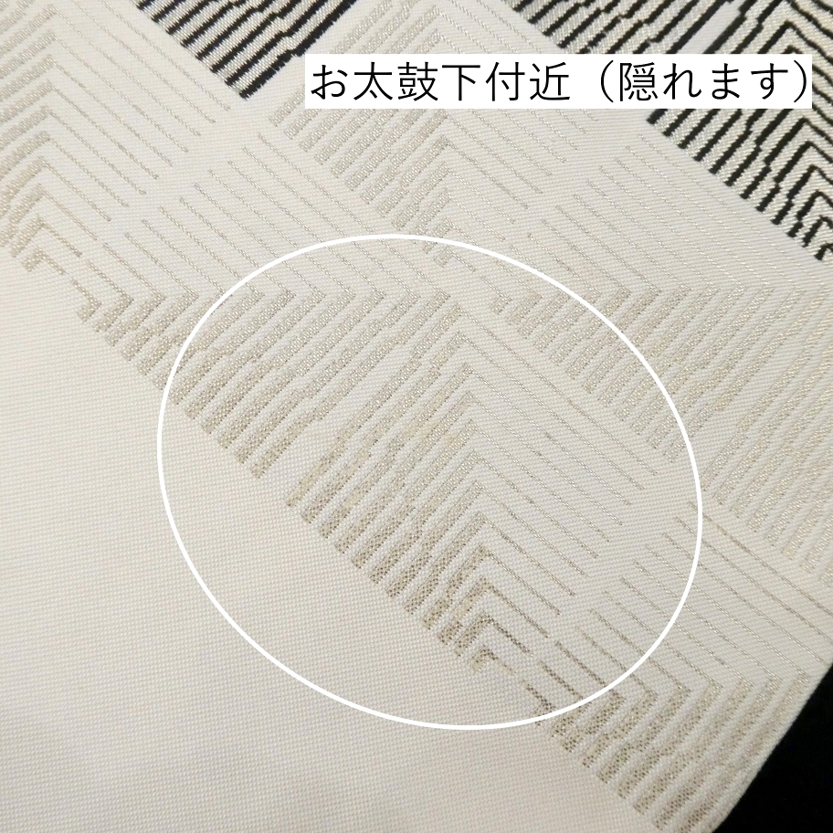 〓雅星〓良品!!アイボリー*スクエア モノトーン♪正絹九寸《名古屋帯》