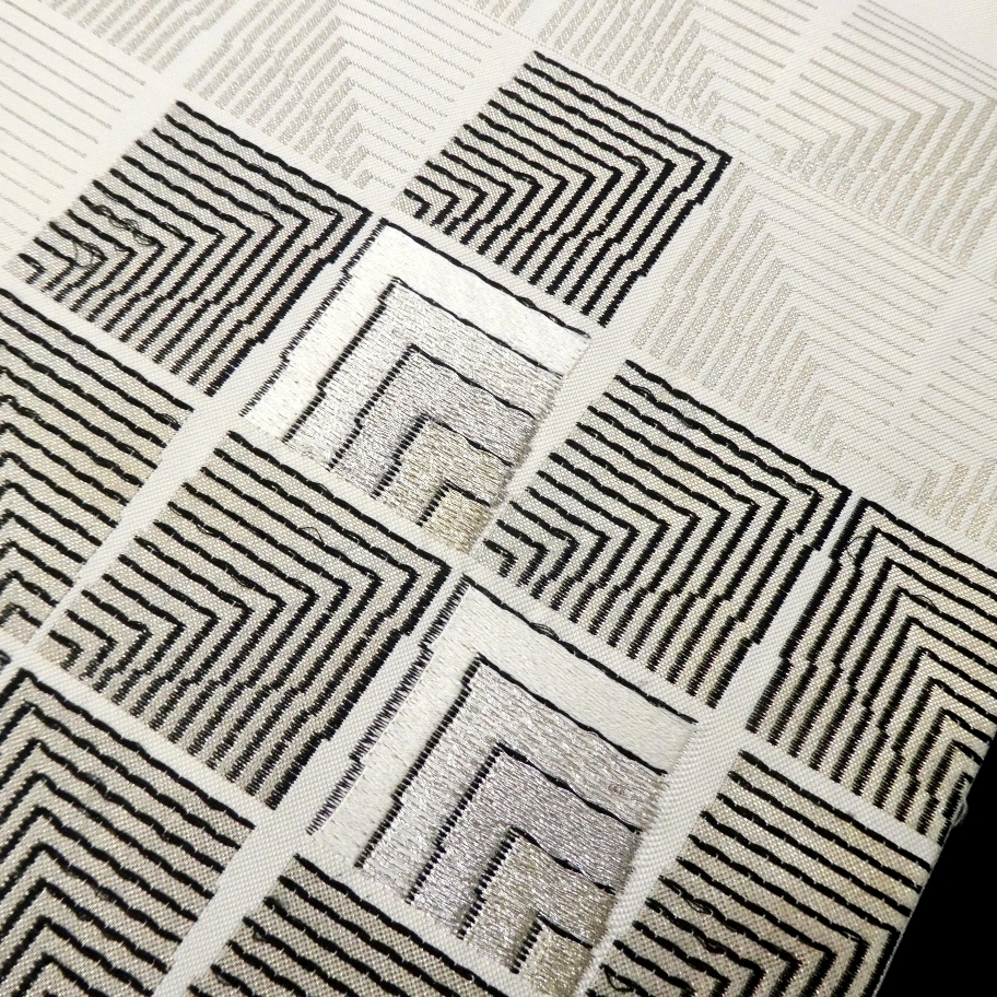 アイボリーべースにモノトーンのスクエア模様があしらわれたスタイリッシュなデザイン。