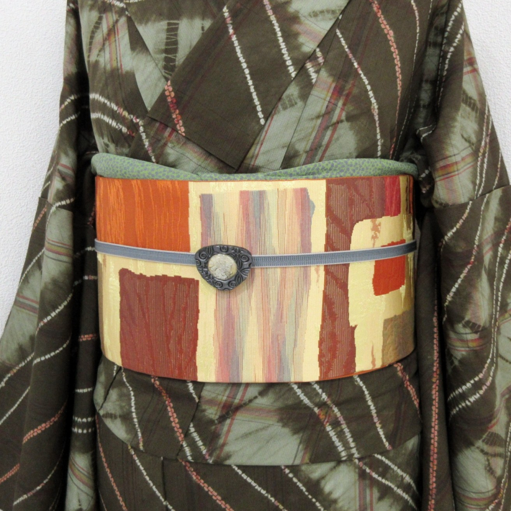 ■雅星■美品!!ウォーム*幾何学 スクエア♪正絹八寸《名古屋帯》 販売価格 16,800円 (税込) 購入数 \送料無料/ カートに入れる この商品について問い合わせる お気に入り 特定商取引法に基づく表記 商品詳細 状態ランク: ★★★★ 適度な張りがあり、薄くてしなやかなので軽やかな締め心地◎ オレンジ・ベージュ系ベースに抽象柄で着回し万能♪ レトロコーデ〜現代カジュアルな着こなしまで、 どちらのコーディネートでもお楽しみ頂ける八寸名古屋帯です。 締め跡はありますが、目立つシミ汚れの無い綺麗なお品です。 帯のみの価格で、着物・小物は含まれておりません。 サイズ・素材 長さ 30.5cm×357cm 素材 正絹 状態ランクについて ★★★★★ 超美品・新品・未使用品です。 ★★★★ 中古品ですがダメージの無いお品です。 ★★★ 薄ジミなどがありますが着用時には目立ちません。 ★★ 工夫次第で十分着用可能なお買い得品です ★ 大きめのシミがありますので、リメイク材料等にどうぞ。
