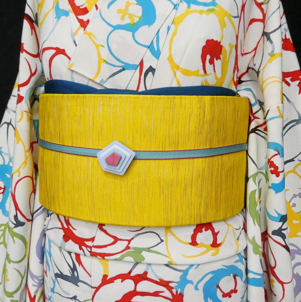 〓雅星〓レトロ!!イエロー*無地 キラキラ♪正絹九寸《名古屋帯》 販売価格 22,800円 (税込) 購入数 \送料無料/ カートに入れる この商品について問い合わせる お気に入り 特定商取引法に基づく表記 商品詳細 状態ランク: ★★★ 明るいイエローベースに銀の引き箔が光の加減でキラキラ煌めきます。 時代感が古すぎないので現代のお着物と合わせても違和感なく楽しめます。 無地感覚で合わせられるので万能ですし、スタイリングのアクセントにも最適な九寸名古屋帯です。 時代なりの使用感はありますが、締めた後に目立つシミ・汚れはなくグッドコンディションなお品です。 帯のみの価格で、着物・小物は含まれておりません。 サイズ・素材 長さ 28.5cm×337cm 素材 正絹 状態ランクについて ★★★★★ 超美品・新品・未使用品です。 ★★★★ 中古品ですがダメージの無いお品です。 ★★★ 薄ジミなどがありますが着用時には目立ちません。 ★★ 工夫次第で十分着用可能なお買い得品です ★ 大きめのシミがありますので、リメイク材料等にどうぞ。 _an