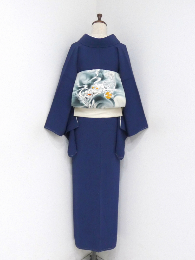 新着商品◆雅星◆良品!!ネイビー*【花井幸子】縮緬 色無地 正絹袷 裄65.5丈153