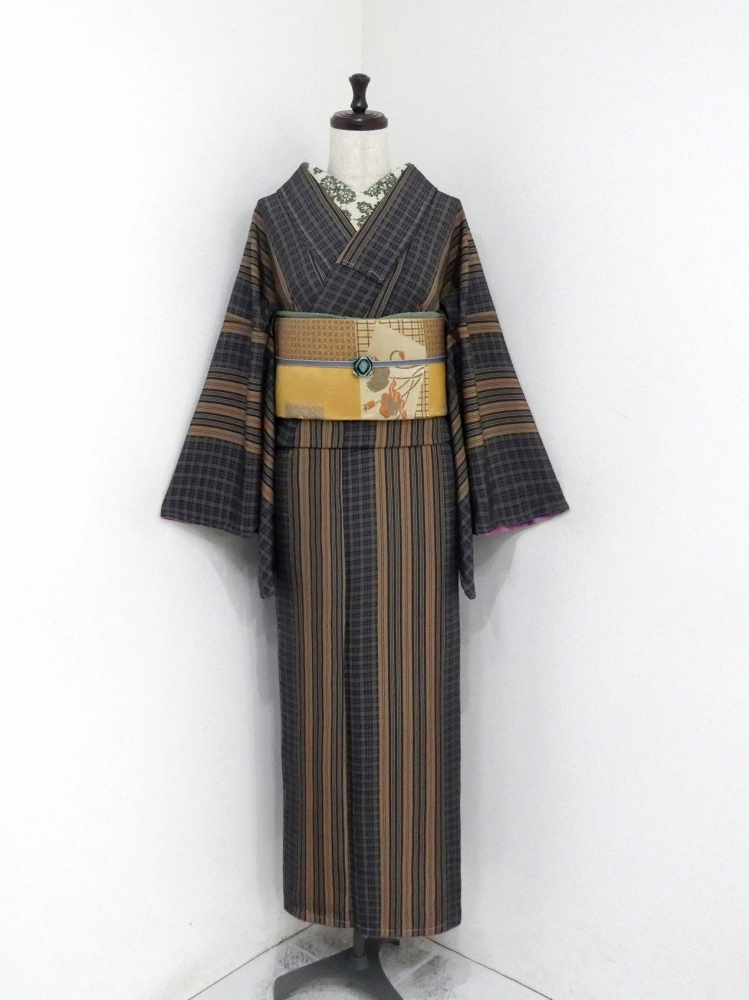 〓雅星〓未使用超美!!濃緑色系*シマシマ×チェック洗える小紋 袷 裄66.5丈164ロング 販売価格 24,800円 (税込) 購入数 \送料無料/ カートに入れる この商品について問い合わせる お気に入り 特定商取引法に基づく表記 コーディネートで使用している商品 〓雅星〓未使用超美!!クッキーベージュ*唐花文♪正絹八寸《名古屋帯》 17,800円(税込) ■雅星本店オリジナル■新品!!グリーン&グレー ストーン*友禅帯揚げ 正絹縮緬 【クリックポスト発送】 15,400円(税込) ★雅星本店オリジナル★新品*リバーシブル 縁あり三分紐【クリックポスト発送】 6,600円(税込) 商品詳細 状態ランク: ★★★★★ 限りなく黒に近い暗い緑系の地色ですが、格子や縦ラインの色味の影響で深緑のお着物に見えます。 流行を問わない色柄ですし、縦ラインのおかげですっきりとしたスタイルアップの叶うデザインです。 綺麗目な正統派からカジュアルスタイルまで振り幅広めに楽しめる洗える小紋です。 天気を気にせずご自宅でお手入れが出来ます! 《袷・広衿》身長159〜169cm位までの方にオススメです。 しつけ付き、目立つシミ・汚れのない未使用超美のお品です。(撮影時のみ使用) 着物のみの価格で、帯・小物は含まれておりません。 サイズ・素材 裄 66.5cm 肩身丈 164cm 袖丈 50cm 袖幅 34cm 前幅 23.5cm 後ろ幅 31cm 内揚げ 0cm 縫込み(袖側) 0.5cm 縫込み(肩側) 0.5cm 素材 ポリエステル 状態ランクについて ★★★★★ 超美品・新品・未使用品です。 ★★★★ 中古品ですがダメージの無いお品です。 ★★★ 薄ジミなどがありますが着用時には目立ちません。 ★★ 工夫次第で十分着用可能なお買い得品です ★ 大きめのシミがありますので、リメイク材料等にどうぞ。