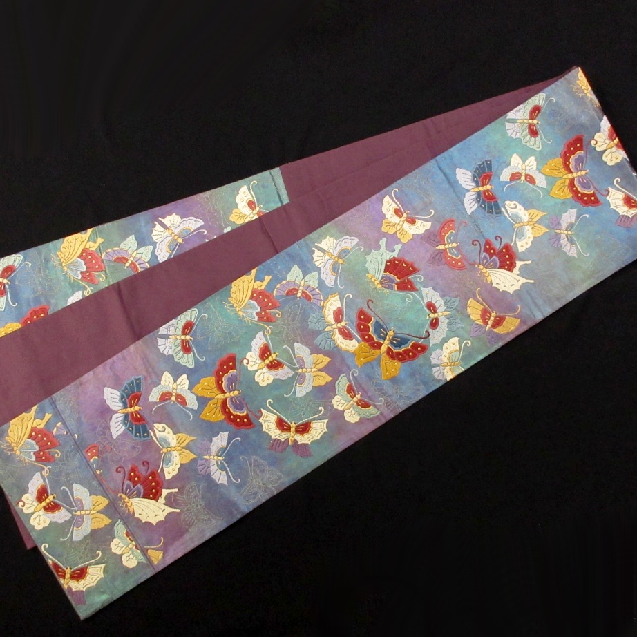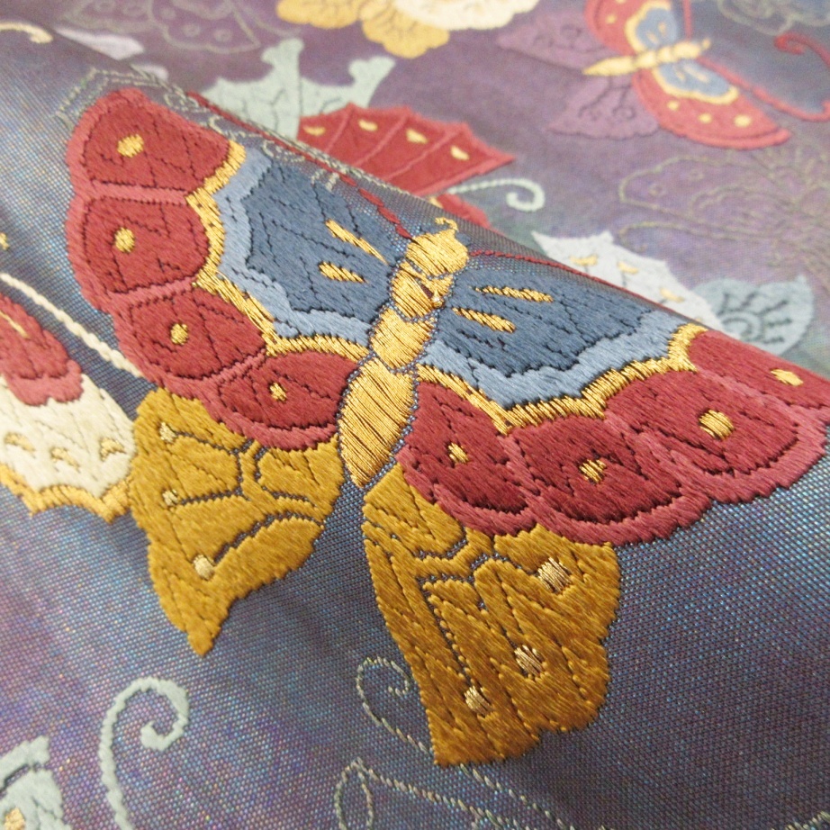 ■雅星■超美!!スモーキーグラデ*唐織 蝶々♪正絹六通《袋帯》 販売価格 36,800円 (税込) 購入数 \送料無料/ カートに入れる この商品について問い合わせる お気に入り 特定商取引法に基づく表記 商品詳細 状態ランク: ★★★★★ スモーキーなブルー〜パープルのグラデーションベース、ふっくらとした唐織であしらわれたカラフルな蝶々模がお着物をより華やかな印象にしてくれます。 多色使いなので様々なお着物に合わせやすく万能。 お振袖・フォーマルシーンはもちろん、華やかなパーティなどにもおススメな袋帯です。 シミ・汚れのない未使用超美のお品です。 帯のみの価格で、着物・小物は含まれておりません。 サイズ・素材 長さ 30.5cm×440cm 素材 正絹 状態ランクについて ★★★★★ 超美品・新品・未使用品です。 ★★★★ 中古品ですがダメージの無いお品です。 ★★★ 薄ジミなどがありますが着用時には目立ちません。 ★★ 工夫次第で十分着用可能なお買い得品です ★ 大きめのシミがありますので、リメイク材料等にどうぞ。 _fo