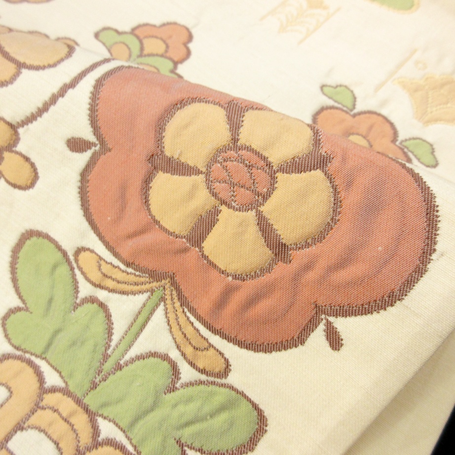 ■雅星■美品!!アイボリー*レトロ フラワー♪正絹六通《洒落袋帯》 販売価格 24,800円 (税込) 購入数 \送料無料/ カートに入れる この商品について問い合わせる お気に入り 特定商取引法に基づく表記 商品詳細 状態ランク: ★★★ 薄手でしなやかなので扱いやすく軽い締め心地◎ アイボリーベースにレトロテイストの花模様がポップ♪ お洒落な普段着に合わせて頂けます。 締め跡はありますが、目立つシミ汚れのない綺麗なお品です。 帯のみの価格で、着物・小物は含まれておりません。 サイズ・素材 長さ 31cm×415cm 素材 正絹 状態ランクについて ★★★★★ 超美品・新品・未使用品です。 ★★★★ 中古品ですがダメージの無いお品です。 ★★★ 薄ジミなどがありますが着用時には目立ちません。 ★★ 工夫次第で十分着用可能なお買い得品です ★ 大きめのシミがありますので、リメイク材料等にどうぞ。