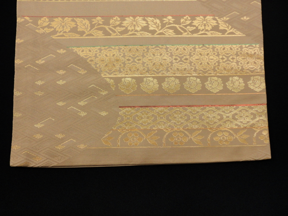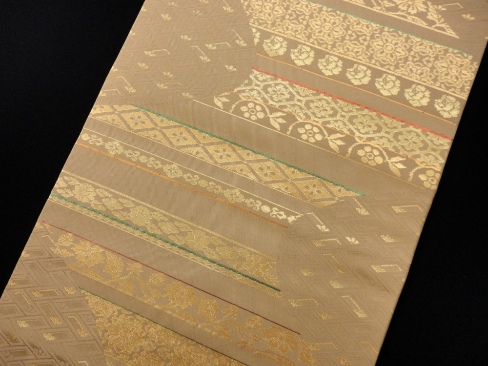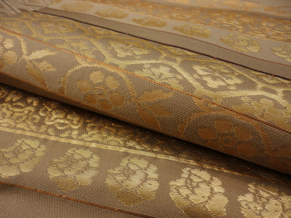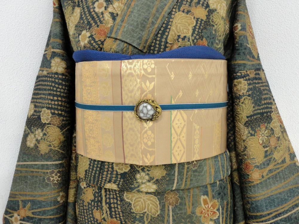 ○雅星○美品!!ブロンズ*箔織 横段 古典模様 正絹九寸《名古屋帯》 販売価格 17,800円 (税込) 購入数 \送料無料/ カートに入れる この商品について問い合わせる お気に入り 特定商取引法に基づく表記 商品詳細 状態ランク: ★★★★ ブロンズベージュべースに箔織の横段模様、花や菱・紗綾形などの古典模様が上品なデザインです。 様々なテイストの着こなしと相性の良い名古屋帯です。 軽い締め跡はありますがシミ汚れのないお品です。 帯のみの価格で、着物・小物は含まれておりません。 サイズ・素材 長さ 30.5cm×374cm 素材 正絹 状態ランクについて ★★★★★ 超美品・新品・未使用品です。 ★★★★ 中古品ですがダメージの無いお品です。 ★★★ 薄ジミなどがありますが着用時には目立ちません。 ★★ 工夫次第で十分着用可能なお買い得品です ★ 大きめのシミがありますので、リメイク材料等にどうぞ。