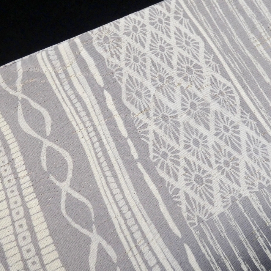 〓雅星〓未使用超美!!グレー系*暈し アーティ♪正絹全通 《袋帯》 販売価格 36,800円 (税込) sold out この商品について問い合わせる お気に入り 特定商取引法に基づく表記 商品詳細 状態ランク: ★★★★★ グレー×ネイビーの暈しベース、横段状にあしらわれた抽象柄がスタイリッシュなデザイン。 織り込まれた金糸の煌めきも控えめなので、フォーマル感が強すぎず上質な小紋とも相性◎ 胴柄は巻く向きで色合いが異なるので、スタイリングに合わせて変化をお楽しみください。 スタイリングをぐっと格上げしてくれる上質な袋帯です。 目立つシミ・汚れのない未使用超美のお品です。(撮影時のみ使用) 帯のみの価格で、着物・小物は含まれておりません。 サイズ・素材 長さ 31cm×457cm 素材 正絹 状態ランクについて ★★★★★ 超美品・新品・未使用品です。 ★★★★ 中古品ですがダメージの無いお品です。 ★★★ 薄ジミなどがありますが着用時には目立ちません。 ★★ 工夫次第で十分着用可能なお買い得品です ★ 大きめのシミがありますので、リメイク材料等にどうぞ。 _fo