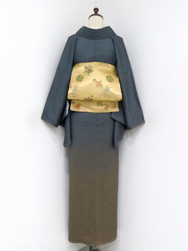 ◆雅星◆未使用超美!!熨斗目花色×琥珀色*大小あられ 作家物 付下げ小紋 正絹袷 裄65丈162ロング 販売価格 37,800円 (税込) 購入数 \送料無料/ カートに入れる この商品について問い合わせる お気に入り 特定商取引法に基づく表記 コーディネートで使用している商品 ◆雅星◆超美!!薄香色*香炉文 龍 正絹九寸《名古屋帯》 32,800円(税込) ★雅星本店オリジナル★新品!!プラチナ*帯締め 房付き四分紐 正絹【クリックポスト発送】 13,800円(税込) 商品詳細 状態ランク: ★★★★★ しなやかな手触りで落ち感も綺麗な正絹地。 濃い水色ベースにくすんだ黄色の霰模様、裾に行くにつれ大きくなっています。 ベーシックな色柄ですが、すっきりと凛とした着姿でスタイルアップが叶います◎ お着物の格は小紋と同じなので、上級者のお洒落着としてお気軽に是非! 《袷・広衿》身長157〜167cm位までの方にオススメです。 それ以上の方はミセル裾除けホムシュヘムなどと合わせても♪ しつけ付き! シミ汚れの無い未使用超美品のお品です。 着物のみの価格で、帯・小物は含まれておりません。 サイズ・素材 裄 65cm 肩身丈 162cm 袖丈 49cm 袖幅 33cm 前幅 23cm 後ろ幅 29cm 内揚げ 4cm 縫込み(袖側) 2cm 縫込み(肩側) 2.5cm 素材 正絹 状態ランクについて ★★★★★ 超美品・新品・未使用品です。 ★★★★ 中古品ですがダメージの無いお品です。 ★★★ 薄ジミなどがありますが着用時には目立ちません。 ★★ 工夫次第で十分着用可能なお買い得品です ★ 大きめのシミがありますので、リメイク材料等にどうぞ。 _mono
