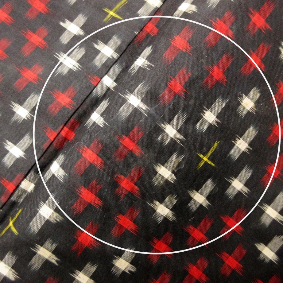 ■雅星■レトロ!!ブラック*絣 クロス♪銘仙 正絹袷 裄62丈145 販売価格 7,800円 (税込) 購入数 \送料無料/ カートに入れる この商品について問い合わせる お気に入り 特定商取引法に基づく表記 コーディネートで使用している商品 ★雅星本店オリジナル★新品【芭蕉】アッシュ*リバーシブル《半幅帯》 16,800円(税込) ★雅星本店オリジナル★新品*リバーシブル 縁あり三分紐【クリックポスト発送】 6,600円(税込) 商品詳細 状態ランク: ★★ ブラックベースに十字絣がポップな印象♪ ベーシックな色柄なので帯次第で着こなし振り幅広めな銘仙キモノです^^ ワンピース感覚や洋服ミックスでお楽しみ頂いても素敵!! 《袷・バチ衿》身長〜150cm位までの方にオススメです。 胴裏・八掛にシミはありますがご着用にはさほど問題はありません。 衿周り・袖口汚れあり。 上前身頃にシミ、その他ちょこちょこと軽いスレがあります。 色柄を気に入って下さった方・時代物に慣れた方に是非♪ 着物のみの価格で、帯・小物は含まれておりません。 サイズ・素材 裄 62cm 肩身丈 145cm 袖丈 49cm 袖幅 31cm 前幅 23cm 後ろ幅 30cm 内揚げ 0cm 縫込み(袖側) 2.5cm 縫込み(肩側) 1cm 素材 正絹 状態ランクについて ★★★★★ 超美品・新品・未使用品です。 ★★★★ 中古品ですがダメージの無いお品です。 ★★★ 薄ジミなどがありますが着用時には目立ちません。 ★★ 工夫次第で十分着用可能なお買い得品です ★ 大きめのシミがありますので、リメイク材料等にどうぞ。 _an