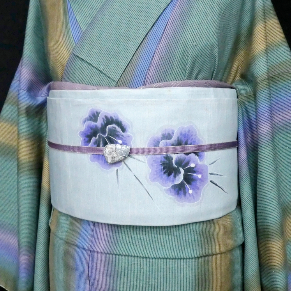 〓雅星〓良品!!パウダーブルー*紬地 花模様♪正絹九寸 染め《名古屋帯》 販売価格 16,800円 (税込) 購入数 \送料無料/ カートに入れる この商品について問い合わせる お気に入り 特定商取引法に基づく表記 商品詳細 状態ランク: ★★★ ふっくら温かみのある織り、薄手でしなやかなので軽やかな締め心地◎ 淡い水色ベースに艶っぽい紫の花模様があしらわれ女性らしい華やかさを感じます♪ 綺麗目な正統派からカジュアルコーデまで幅広く合わせて頂ける九寸名古屋帯です。 全体的に薄っすらくすみを感じますが写真に写らない位軽度です。 その他点シミもちょこちょこある為ぐっとお値下げしています。 いずれも着後に酷く目立つようなダメージではないので、色柄を気に入ってくださった方に是非! 帯のみの価格で、着物・小物は含まれておりません。 サイズ・素材 長さ 32cm×358cm 素材 正絹 状態ランクについて ★★★★★ 超美品・新品・未使用品です。 ★★★★ 中古品ですがダメージの無いお品です。 ★★★ 薄ジミなどがありますが着用時には目立ちません。 ★★ 工夫次第で十分着用可能なお買い得品です ★ 大きめのシミがありますので、リメイク材料等にどうぞ。