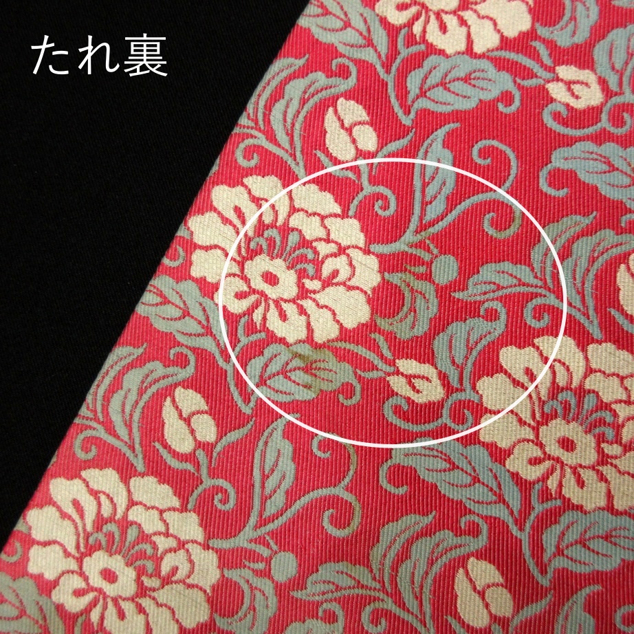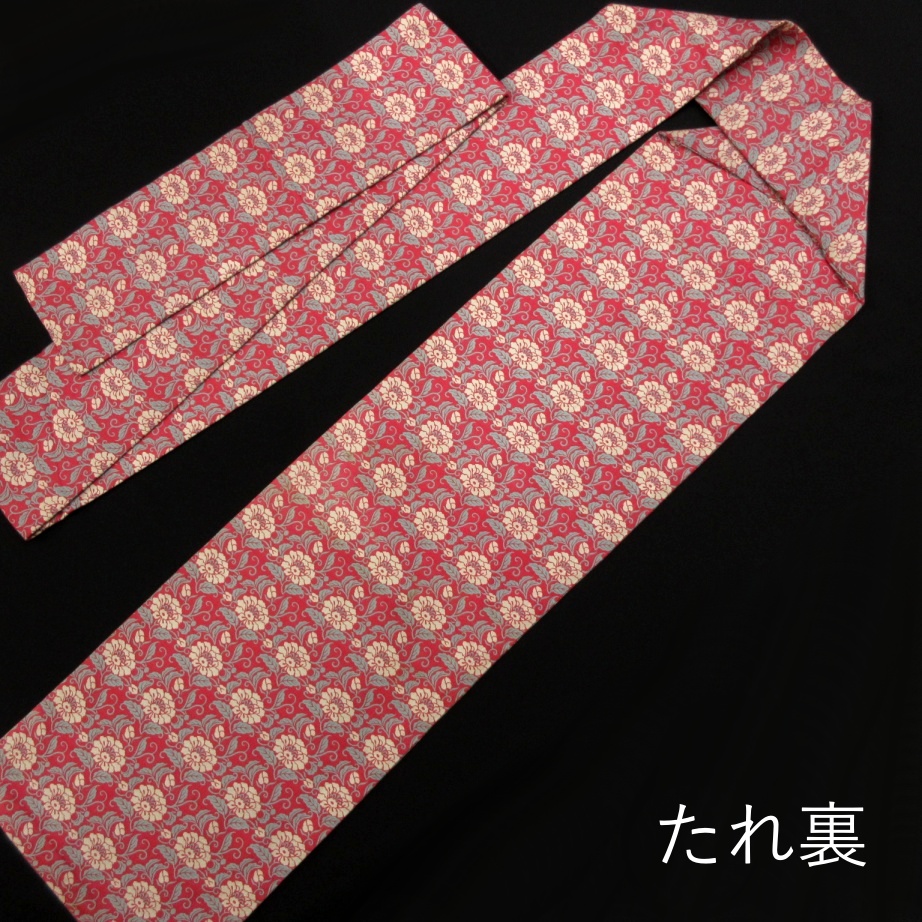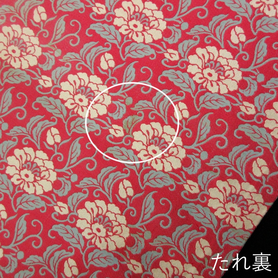 ■雅星■レトロ!!コーラルレッド*唐花文♪正絹九寸《名古屋帯》 販売価格 16,800円 (税込) 購入数 \送料無料/ カートに入れる この商品について問い合わせる お気に入り 特定商取引法に基づく表記 商品詳細 状態ランク: ★★★ 柔らかな赤ピンクベースに唐花文が大人可愛い♪ 時代感が古すぎないのでセミアンティーク初心者さんにもおススメ◎ 現代のお着物とも相性が良い九寸名古屋帯です。 たれの花柄が逆を向いていますので、たれ裏を使って結んで頂くと柄が正面を向きます。 小さなシミがちょこちょことありますが、目立ちません。 お気軽にお使い頂けるコンディションです。 帯のみの価格で、着物・小物は含まれておりません。 サイズ・素材 長さ 30.5cm×370cm 素材 正絹 状態ランクについて ★★★★★ 超美品・新品・未使用品です。 ★★★★ 中古品ですがダメージの無いお品です。 ★★★ 薄ジミなどがありますが着用時には目立ちません。 ★★ 工夫次第で十分着用可能なお買い得品です ★ 大きめのシミがありますので、リメイク材料等にどうぞ。 _an