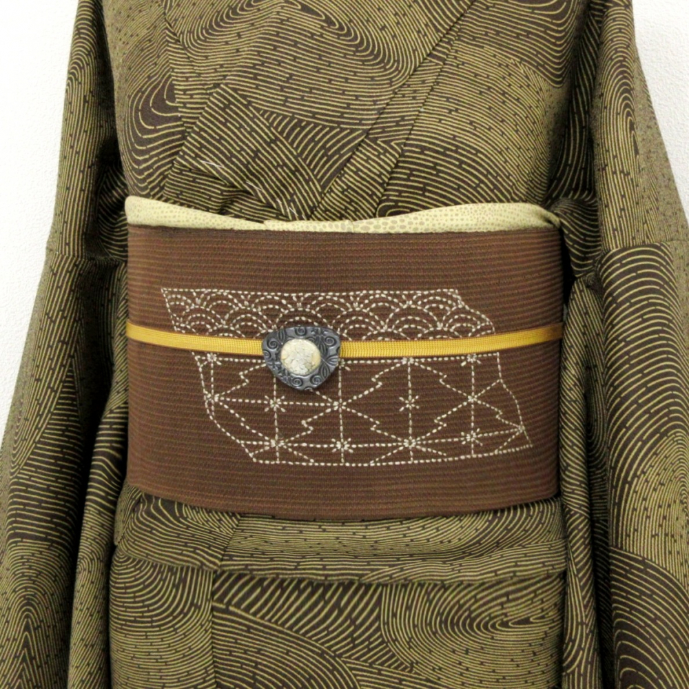 ■雅星■良品!!ブラウン*刺し子刺繍 麻の葉 青海波 紗綾型♪正絹八寸《名古屋帯》 販売価格 19,800円 (税込) 購入数 \送料無料/ カートに入れる この商品について問い合わせる お気に入り 特定商取引法に基づく表記 商品詳細 状態ランク: ★★★ ブラウンベースに、吉祥文の刺し子。手仕事の味わいが深い雰囲気♪ シックな色柄でこなれたスタイリングが叶います。 薄手でしなやかな、軽い締め心地◎ 綺麗目な正統派はもちろん、自由なスタイリングとも相性の良い八寸名古屋帯です。 お太鼓柄上にスレがありますが隠れます。 結んだ後にひどく目立つシミ汚れは無くお気軽にお楽しみ頂けます。 帯のみの価格で、着物・小物は含まれておりません。 サイズ・素材 長さ 31cm×370cm 素材 正絹 状態ランクについて ★★★★★ 超美品・新品・未使用品です。 ★★★★ 中古品ですがダメージの無いお品です。 ★★★ 薄ジミなどがありますが着用時には目立ちません。 ★★ 工夫次第で十分着用可能なお買い得品です ★ 大きめのシミがありますので、リメイク材料等にどうぞ。