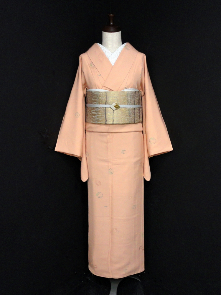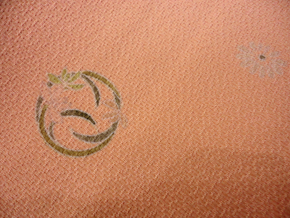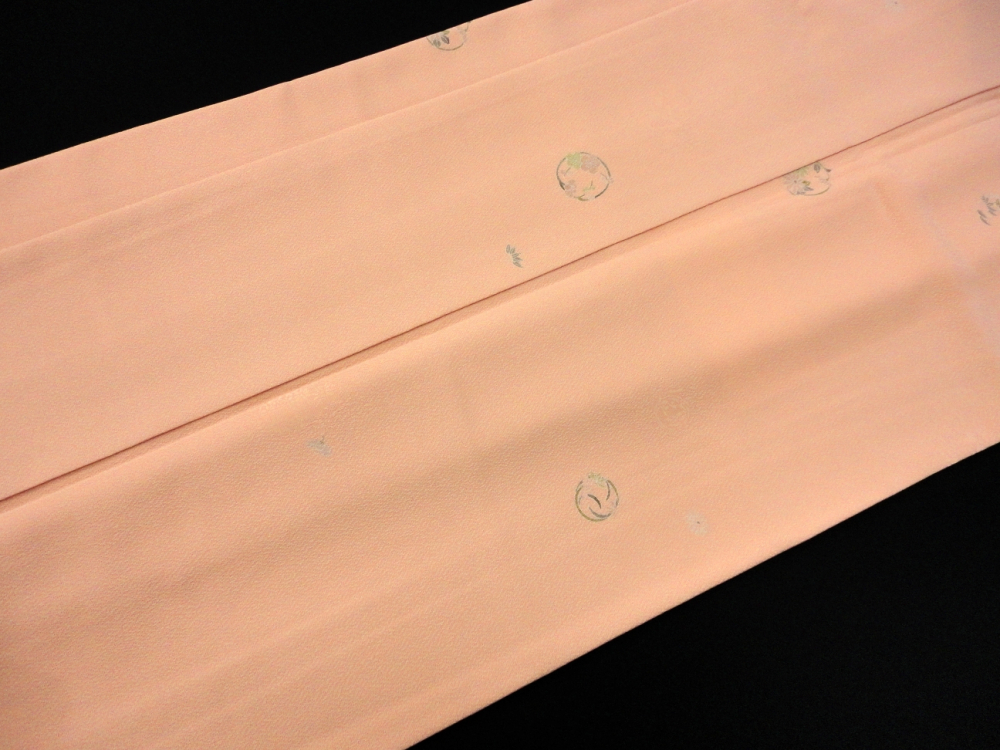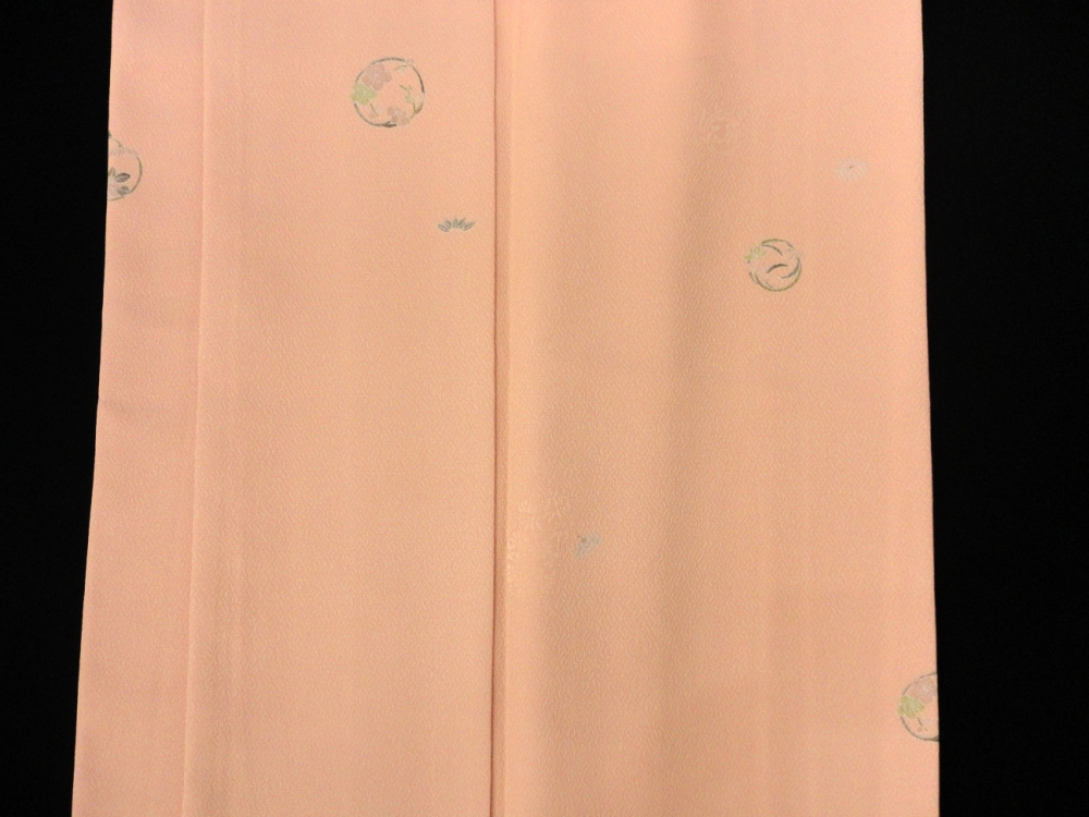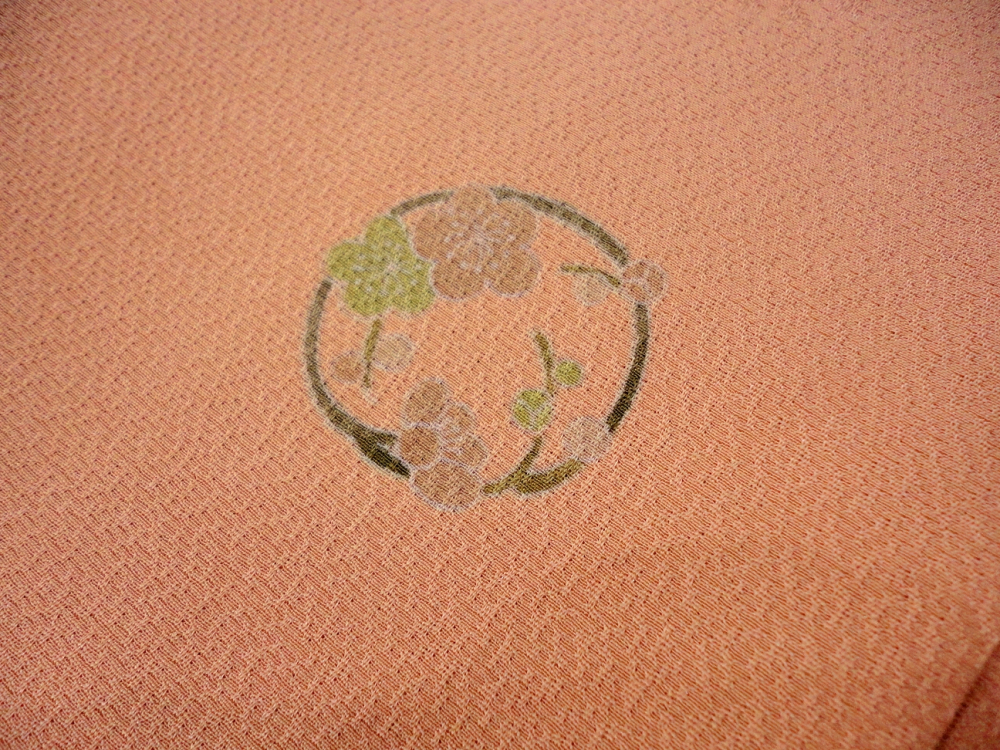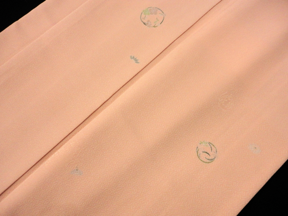 柔らかいオレンジピンクベースに花丸文があしらわれ高級感があります。