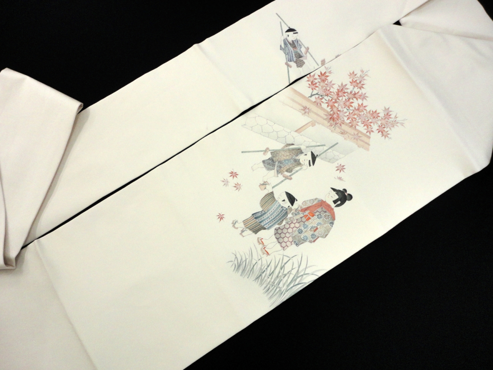 ○雅星○良品!!ホワイト*童 わらべ 紅葉♪正絹九寸《名古屋帯》 販売価格 17,800円 (税込) 購入数 \送料無料/ カートに入れる この商品について問い合わせる お気に入り 特定商取引法に基づく表記 商品詳細 状態ランク: ★★★ さらりと柔らかい手触りの正絹地。 ホワイトベースに紅葉散る中に、子供たちが竹馬などで遊んでいる様子を描かれた遊び心あふれるデザイン。 粋でありつつ、ちょっとファニーな印象でスタイリングに一癖付け加える事が出来る名古屋帯です。 反時計回り胴柄横に薄シミが見られますが隠れる位置です。 締めた後に目立つシミ・汚れはありませんので、色柄を気に入ってくださった方に是非! 帯のみの価格で、着物・小物は含まれておりません。 サイズ・素材 長さ 31.5cm×366cm 素材 正絹 状態ランクについて ★★★★★ 超美品・新品・未使用品です。 ★★★★ 中古品ですがダメージの無いお品です。 ★★★ 薄ジミなどがありますが着用時には目立ちません。 ★★ 工夫次第で十分着用可能なお買い得品です ★ 大きめのシミがありますので、リメイク材料等にどうぞ。