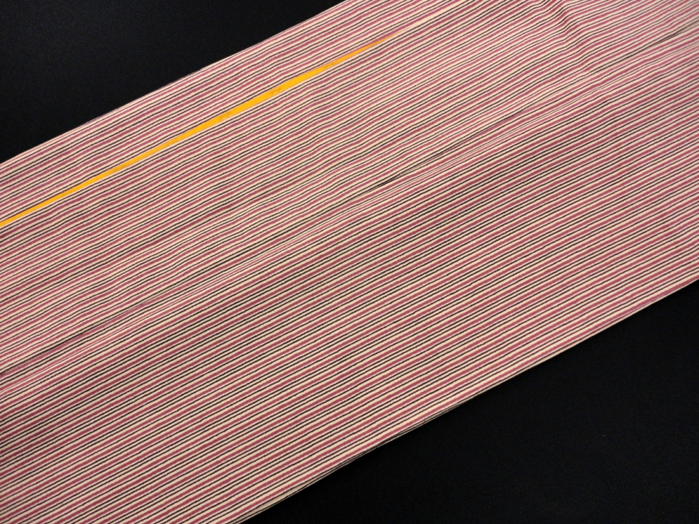 ○雅星○超美!!ピンク×ブラウン*シマシマ♪洗える小紋 袷 裄67丈167ロング