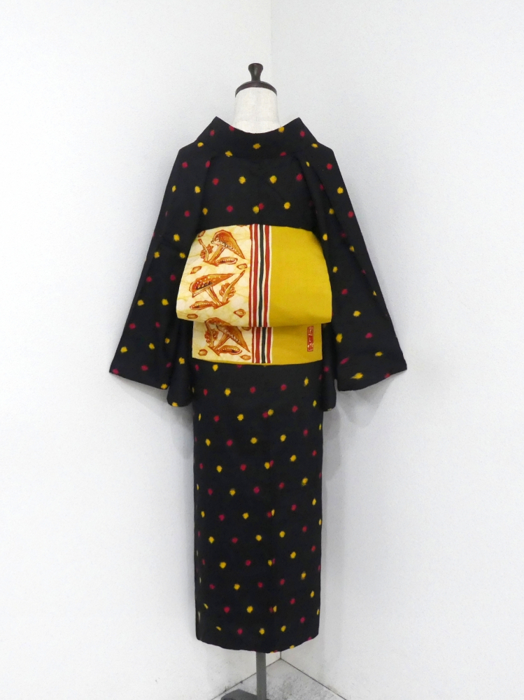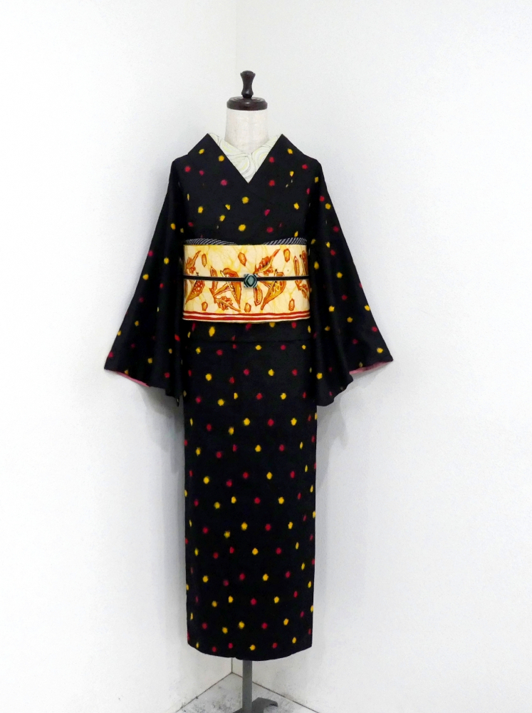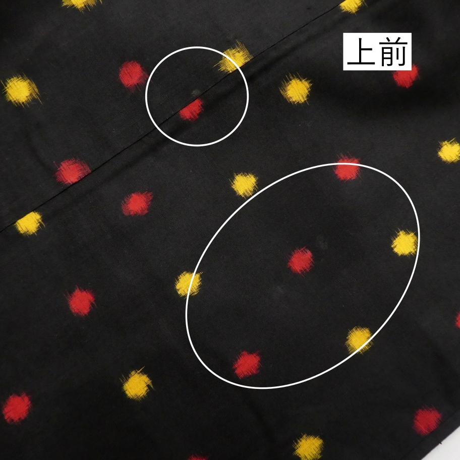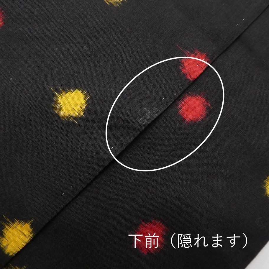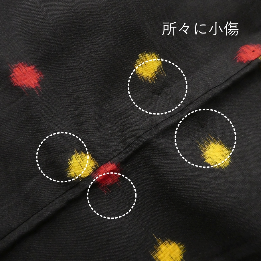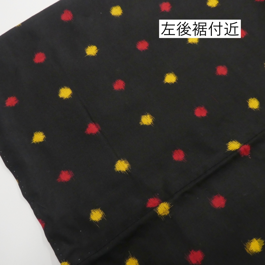 〓雅星〓レトロ!!ブラック*ドット♪銘仙 正絹袷 裄62丈149 販売価格 14,800円 (税込) 購入数 \送料無料/ カートに入れる この商品について問い合わせる お気に入り 特定商取引法に基づく表記 コーディネートで使用している商品 〓雅星〓美品!!パンプキン*作家物 縦ライン リーフ♪塩瀬 正絹九寸 染め《名古屋帯》 17,800円(税込) ★雅星本店オリジナル★新品*リバーシブル 縁あり三分紐【クリックポスト発送】 6,600円(税込) 商品詳細 状態ランク: ★★★ ブラックベース映えるレッド×イエローのドットがカジュアルな印象。 ベーシックな色柄なのでセミアンティーク初心者さんにもおススメな銘仙です。 《袷・バチ衿》身長〜154cm位までの方にオススメです。 ※それ以上の方は対丈や洋服ミックスのスタイリングもお洒落です♪ 画像のような薄汚れ・小傷がありますが、いずれも着後はさほど気になりません。 ぐっとお値下げしていますので、時代物に慣れた方・色柄を気に入ってくださった方に是非! 着物のみの価格で、帯・小物は含まれておりません。 サイズ・素材 裄 62cm 肩身丈 149cm 袖丈 45.5cm 袖幅 32cm 前幅 23cm 後ろ幅 28.5cm 内揚げ 0cm 縫込み(袖側) 0.5cm 縫込み(肩側) 0.5cm 素材 正絹 状態ランクについて ★★★★★ 超美品・新品・未使用品です。 ★★★★ 中古品ですがダメージの無いお品です。 ★★★ 薄ジミなどがありますが着用時には目立ちません。 ★★ 工夫次第で十分着用可能なお買い得品です ★ 大きめのシミがありますので、リメイク材料等にどうぞ。 _an