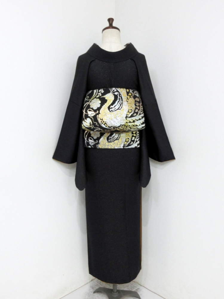 ■雅星■美品!!ブラック*ラメ♪お召し 正絹袷 裄68丈162ロング 販売価格 52,800円 (税込) sold out この商品について問い合わせる お気に入り 特定商取引法に基づく表記 商品詳細 状態ランク: ★★★★ シボのない、しなやかな手触りのお召し地。 ブラックベースに細かな金通しが煌めき、無地ではありますが華やかな装いが楽しめます。 カジュアルダウン・ドレスアップ共に幅広い着こなしができ、パーティーシーンには特におすすめ! 現代〜レトロまで時代感問わず帯小物が合わせられる万能なお召しキモノです。 《袷・広衿》身長157〜167cm位までの方にオススメです。 目立つシミ・汚れはなく、大変状態の良い綺麗なお品です。 着物のみの価格で、帯・小物は含まれておりません。 サイズ・素材 裄 68cm 肩身丈 162cm 袖丈 48.5cm 袖幅 34cm 前幅 23.5cm 後ろ幅 28.5cm 内揚げ 9cm 縫込み(袖側) 2cm 縫込み(肩側) 1cm 素材 正絹 状態ランクについて ★★★★★ 超美品・新品・未使用品です。 ★★★★ 中古品ですがダメージの無いお品です。 ★★★ 薄ジミなどがありますが着用時には目立ちません。 ★★ 工夫次第で十分着用可能なお買い得品です ★ 大きめのシミがありますので、リメイク材料等にどうぞ。 _mono