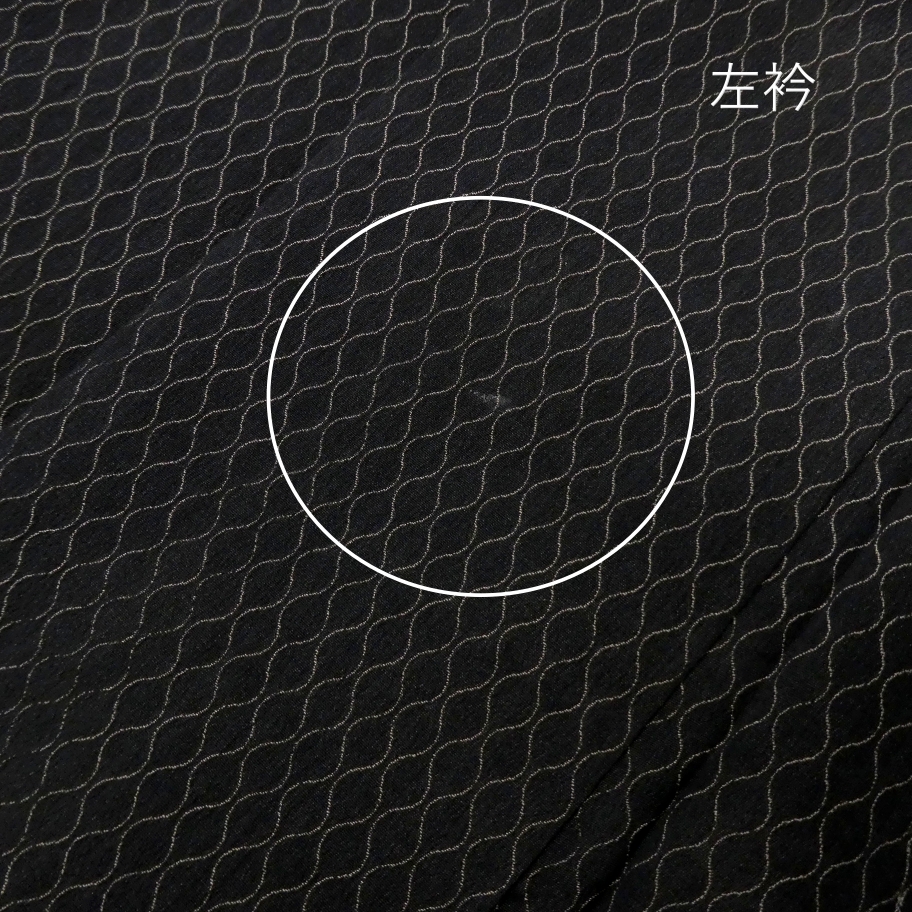 〓雅星〓レトロ!!ブラック*立涌文♪お召し 正絹袷 裄63丈154 販売価格 17,800円 (税込) sold out この商品について問い合わせる お気に入り 特定商取引法に基づく表記 コーディネートで使用している商品 ★雅星本店オリジナル★新品!!ブラック*シマシマ 銀通し 帯揚げ 正絹 【クリックポスト発送】 15,400円(税込) ★雅星本店オリジナル★新品*リバーシブル 縁あり三分紐【クリックポスト発送】 6,600円(税込) 商品詳細 状態ランク: ★★★ シボのないするりとした手触りのお召し地。 ブラックベースにシンプルな立涌文が施された粋なデザイン。 こなれたスタイリングはもちろん、ベーシックな色柄なのでポップな帯とも相性◎ 人と差のつく着こなしが楽しめる1枚です。 《袷・広衿》身長〜159cm位までの方にオススメです。 胴裏に強い変色が見られます。 上前・衿元に薄っすら薄汚れが見られますが軽度なので撮影時は全く目立ちませんでした。 着物のみの価格で、帯・小物は含まれておりません。 サイズ・素材 裄 63cm 肩身丈 154cm 袖丈 45.5cm 袖幅 32cm 前幅 23.5cm 後ろ幅 29cm 内揚げ 7cm 縫込み(袖側) 1.5cm 縫込み(肩側) 1cm 素材 正絹 状態ランクについて ★★★★★ 超美品・新品・未使用品です。 ★★★★ 中古品ですがダメージの無いお品です。 ★★★ 薄ジミなどがありますが着用時には目立ちません。 ★★ 工夫次第で十分着用可能なお買い得品です ★ 大きめのシミがありますので、リメイク材料等にどうぞ。 _an