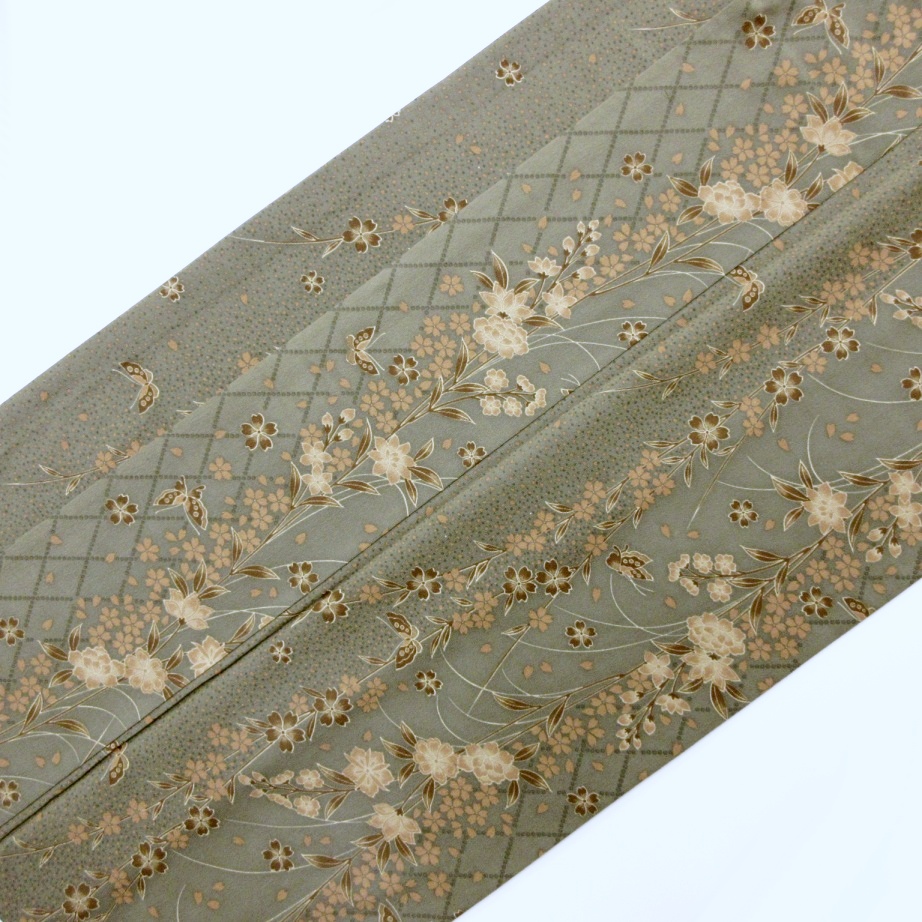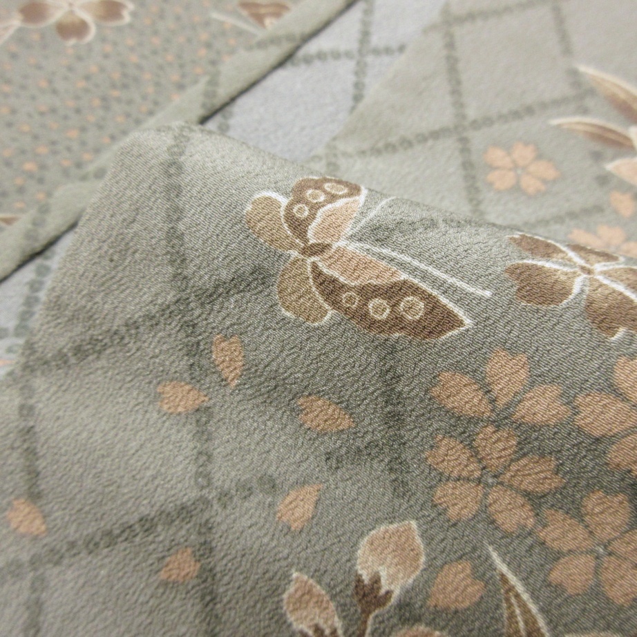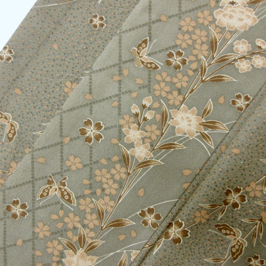 ■雅星■超美!!利休色*花鳥♪洗える小紋 単衣 裄67丈159
