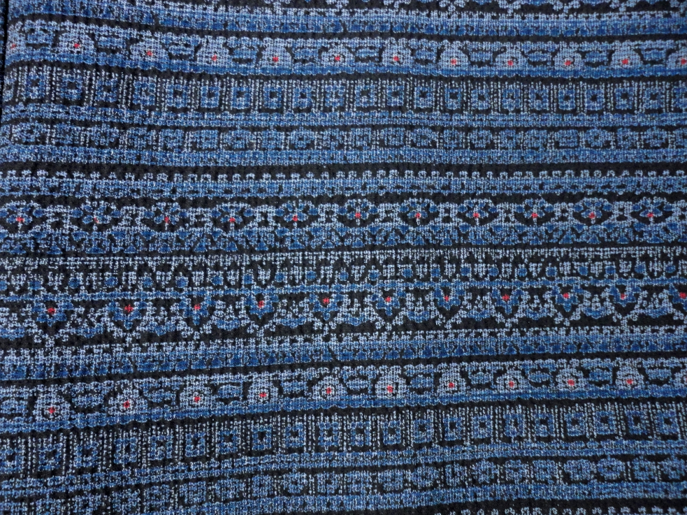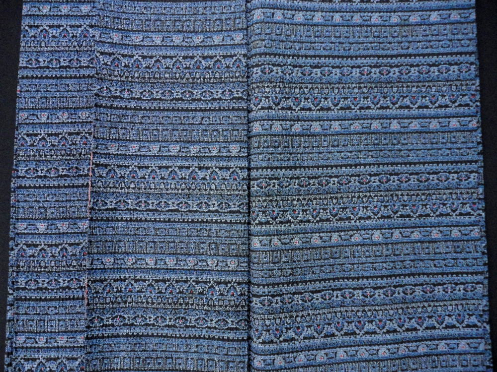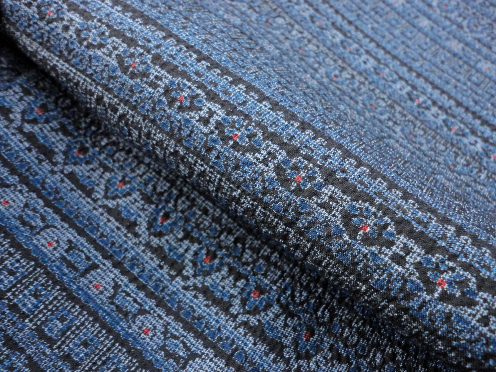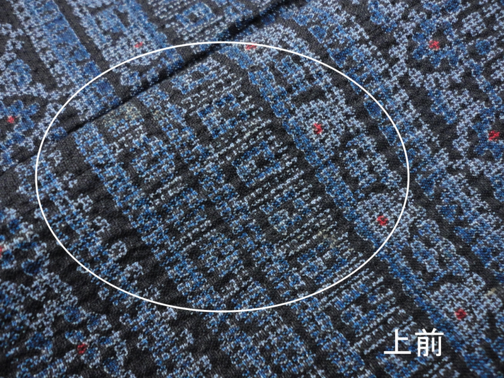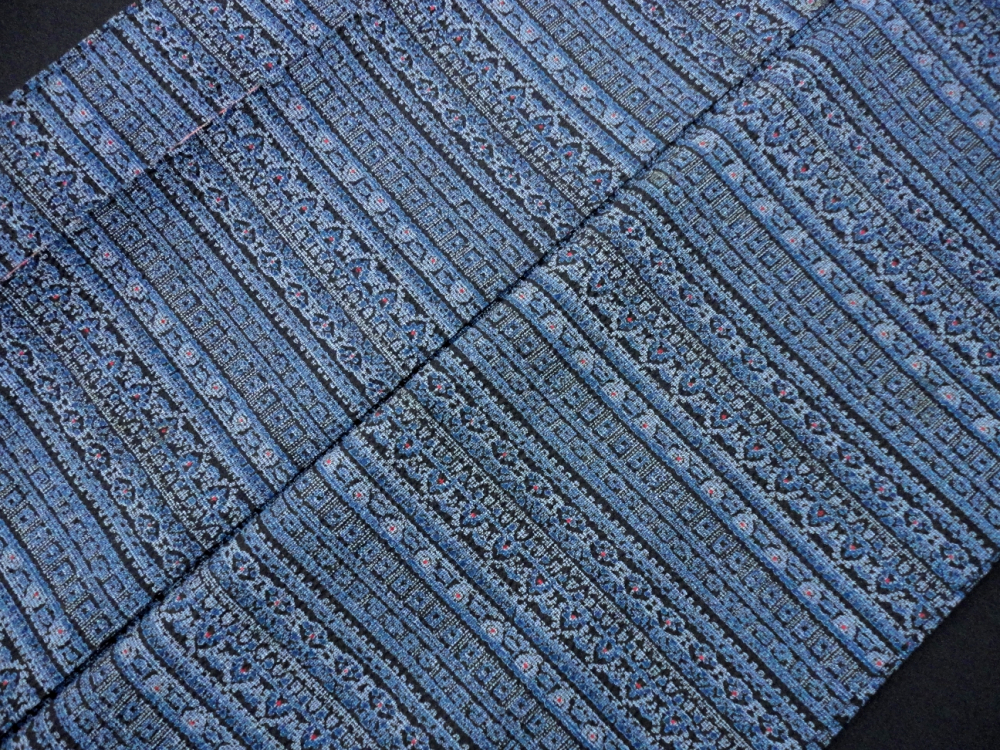 ○雅星○レトロ!!ダークブルー*幾何学模様♪お召し 正絹袷 裄63丈154