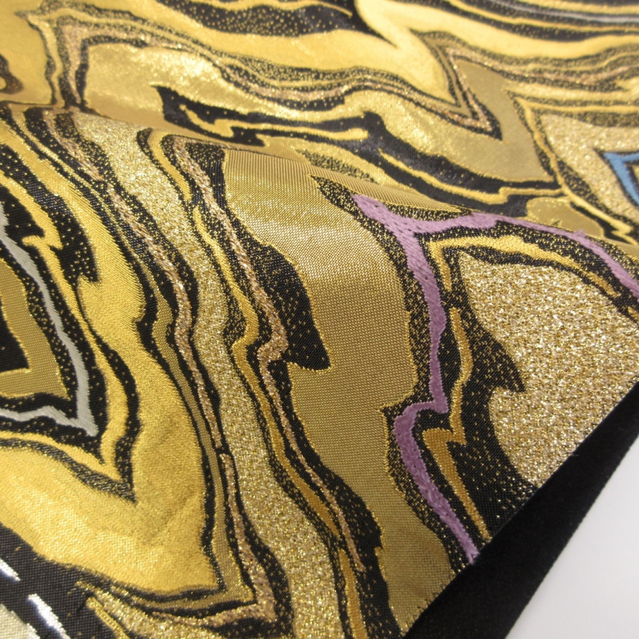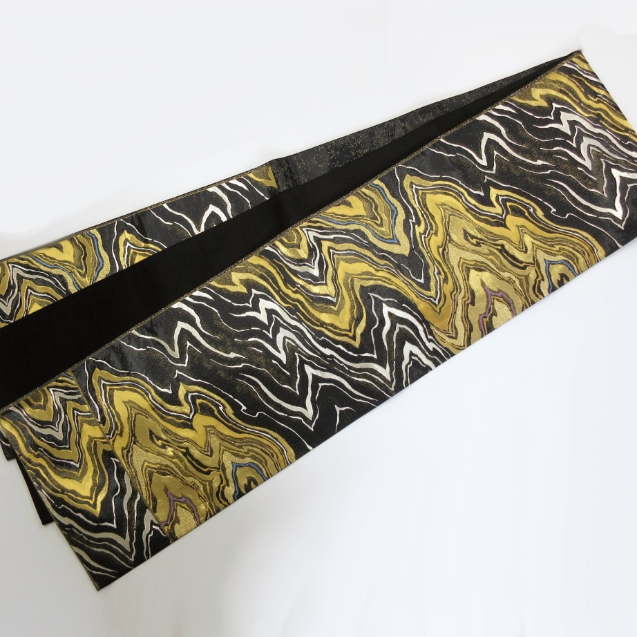 ■雅星■美品!!艶ブラック*漆箔 モダン流水文♪正絹六通《袋帯》