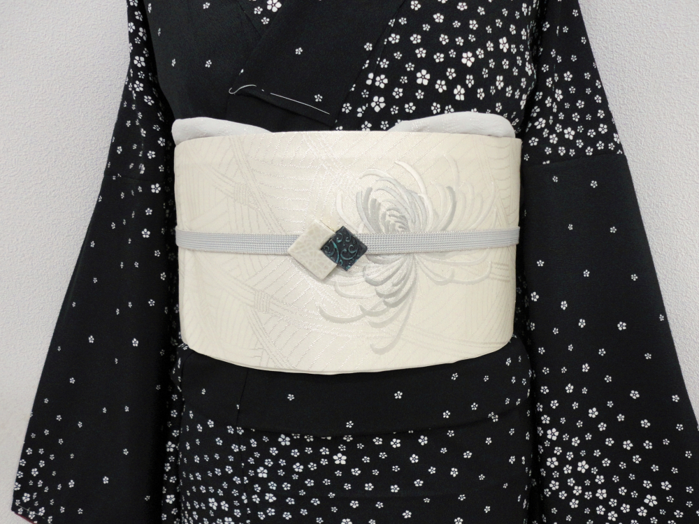 ○雅星○良品!!ホワイトシルバー*糸菊♪正絹九寸《名古屋帯》 販売価格 16,800円 (税込) sold out この商品について問い合わせる お気に入り 特定商取引法に基づく表記 商品詳細 状態ランク: ★★★ ホワイトシルバーベースに刺繍であしらわれた糸菊がスタイリッシュなデザイン。 光の加減で銀糸が煌めき上品な印象。 ベーシックなデザインなので、様々なテイストの着こなしと相性の良い名古屋帯です。 お太鼓下に薄シミがありますが隠れる部分です。 その他締め跡はありますが着後目立つシミ汚れのないお品物です◎ 帯のみの価格で、着物・小物は含まれておりません。 サイズ・素材 長さ 30.5cm×367cm 素材 正絹 状態ランクについて ★★★★★ 超美品・新品・未使用品です。 ★★★★ 中古品ですがダメージの無いお品です。 ★★★ 薄ジミなどがありますが着用時には目立ちません。 ★★ 工夫次第で十分着用可能なお買い得品です ★ 大きめのシミがありますので、リメイク材料等にどうぞ。