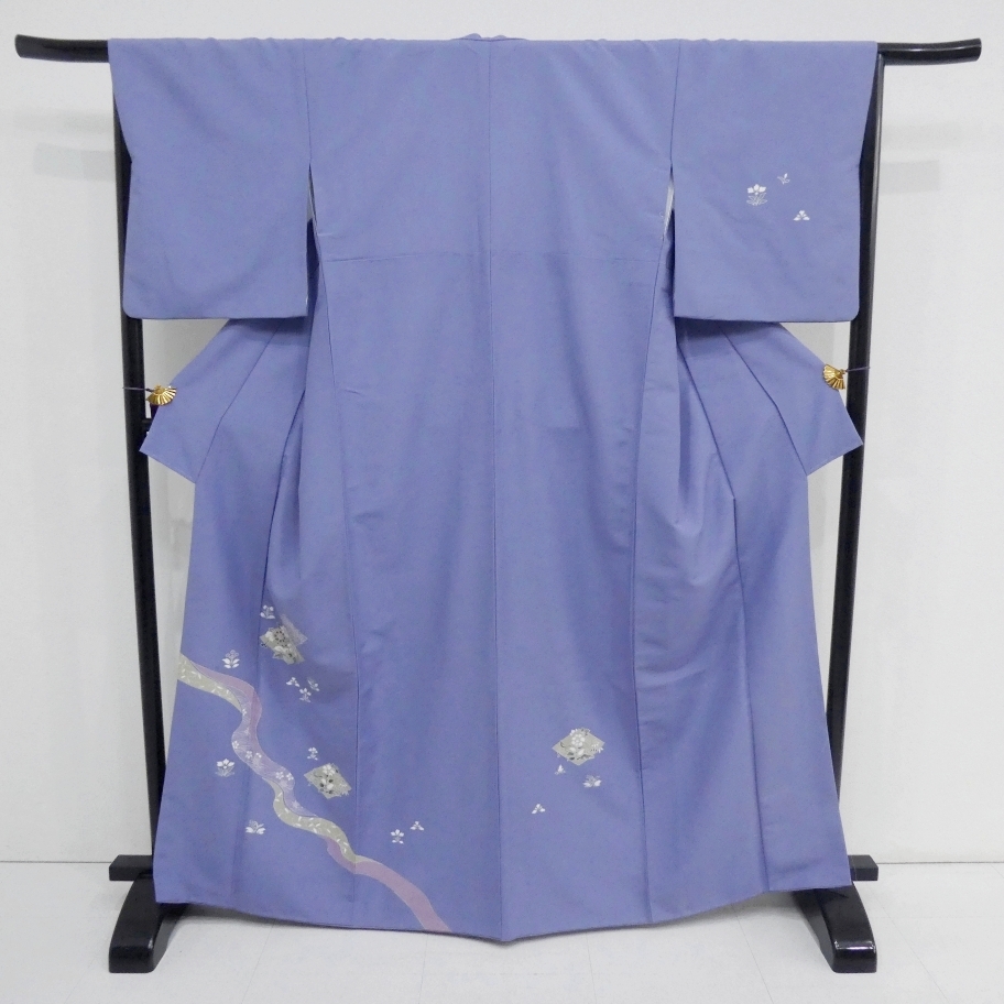 〓雅星〓良品!!ブルーラベンダー*流水に花菱文♪洗える付下げ訪問着 袷 裄66丈166ロング 販売価格 12,800円 (税込) 購入数 \送料無料/ カートに入れる この商品について問い合わせる お気に入り 特定商取引法に基づく表記 コーディネートで使用している商品 〓雅星〓未使用美品!!藍白色【川島織物】横段 荒磯文 洗える《京袋帯》 22,800円(税込) ★雅星本店オリジナル★新品!!プラチナ*シマシマ 銀通し 帯揚げ 正絹 【クリックポスト発送】 15,400円(税込) ★雅星本店オリジナル★新品!!プラチナ*帯締め 房付き四分紐 正絹【クリックポスト発送】 13,800円(税込) 商品詳細 状態ランク: ★★★ 優しい灰色い青紫系ベース、流水に花菱文があしらわれた清潔感あふれる色柄。 女性らしく凛とした着姿が叶う洗える付下げ訪問着です。 天気のすぐれないフォーマルシーンはもちろん、洗える素材なのでお稽古着として活躍してくれる1枚です。 《袷・広衿》身長161〜171cm位までの方にオススメです。 画像のようなぼんやりとした輪ジミが複数見られますが、いずれも軽度なので撮影時は全く気になりませんでした◎ ぐっとお値下げしていますので、汚れても惜しくないお稽古着や着付け練習などに如何でしょうか。 着物のみの価格で、帯・小物は含まれておりません。 サイズ・素材 裄 66cm 肩身丈 166cm 袖丈 49cm 袖幅 34cm 前幅 24cm 後ろ幅 30cm 内揚げ 7cm 縫込み(袖側) 1cm 縫込み(肩側) 1.5cm 素材 ポリエステル 状態ランクについて ★★★★★ 超美品・新品・未使用品です。 ★★★★ 中古品ですがダメージの無いお品です。 ★★★ 薄ジミなどがありますが着用時には目立ちません。 ★★ 工夫次第で十分着用可能なお買い得品です ★ 大きめのシミがありますので、リメイク材料等にどうぞ。 _fo