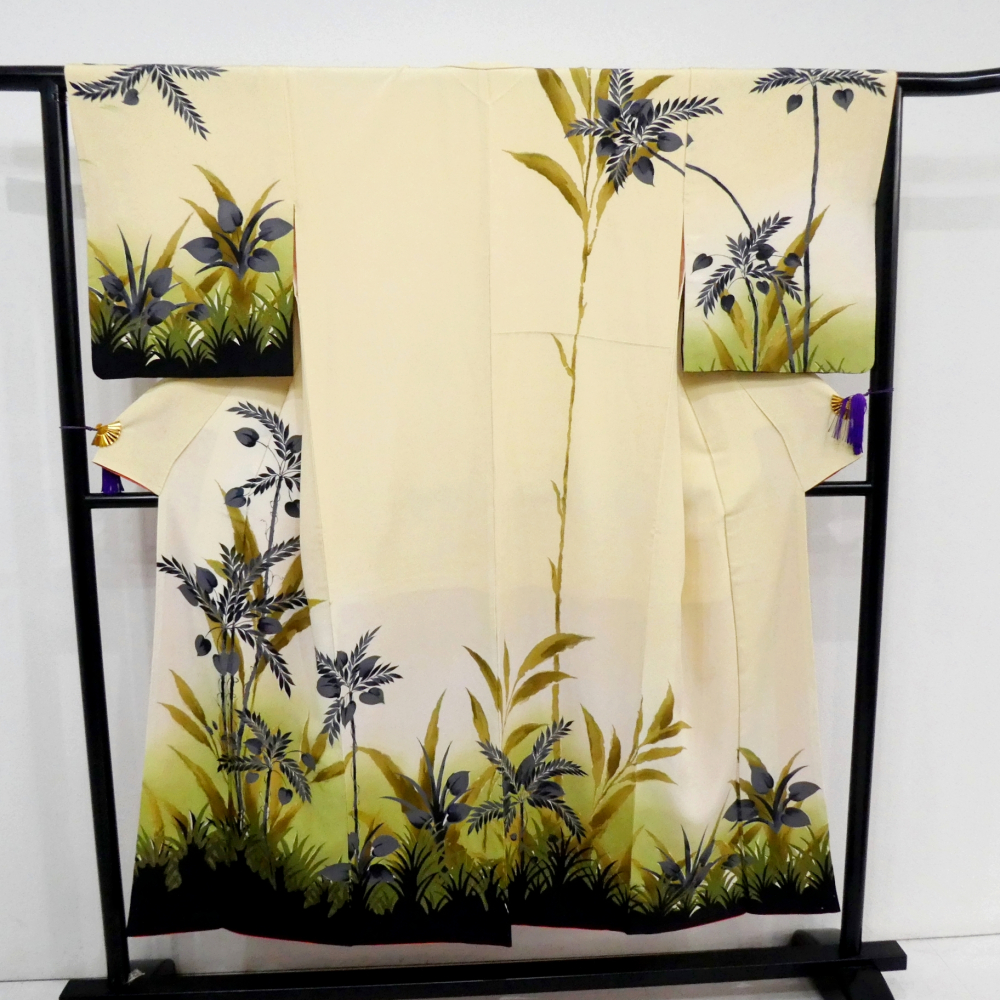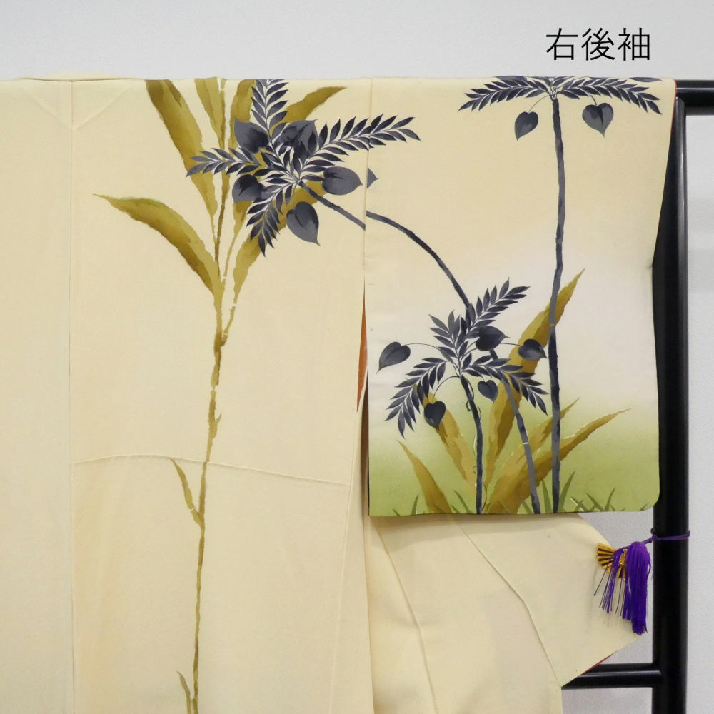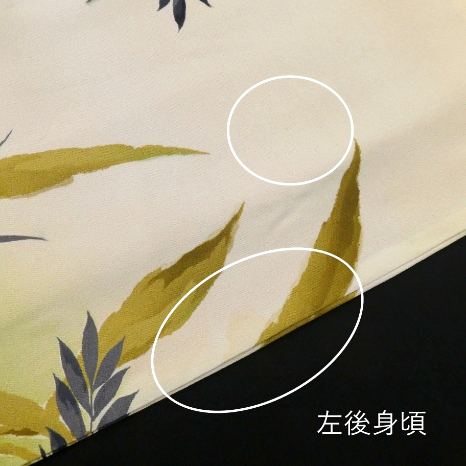 〓雅星〓レトロ!!クリーム*植物文♪訪問着 正絹袷 裄63.5丈148 販売価格 29,800円 (税込) 購入数 \送料無料/ カートに入れる この商品について問い合わせる お気に入り 特定商取引法に基づく表記 コーディネートで使用している商品 〓雅星〓レトロ!!ブラック*リーフ♪正絹九寸《名古屋帯》 24,800円(税込) ★雅星本店オリジナル★新品!!ブラック*シマシマ 銀通し 帯揚げ 正絹 【クリックポスト発送】 15,400円(税込) 商品詳細 状態ランク: ★★★ 明るいクリーム色ベース、細かなシボの上質な縮緬地です。 現代のお着物では中々出会えない異国情緒漂う植物文があしらわれています。 目を惹く女性らしい華やかさがありつつ、花モチーフでは甘すぎて抵抗のある方にもおススメです。 パーティやちょっとしたお出かけなどお気軽にお召し頂きたいセミアンティークの訪問着です。 《袷・広衿》身長〜153cm位までの方にオススメです。 それ以上の方はミセル裾除けホムシュヘムなどと合わせても♪ 画像のような薄シミがちょこちょこありますが、あくまで時代なり程度なので撮影時は目立ちませんでした◎ 時代物に慣れた方・色柄を気に入ってくださった方に是非! 着物のみの価格で、帯・小物は含まれておりません。 サイズ・素材 裄 63.5cm 肩身丈 148cm 袖丈 48.5cm 袖幅 32.5cm 前幅 23.5cm 後ろ幅 29cm 内揚げ 0cm 縫込み(袖側) 2.5cm 縫込み(肩側) 2cm 素材 正絹 状態ランクについて ★★★★★ 超美品・新品・未使用品です。 ★★★★ 中古品ですがダメージの無いお品です。 ★★★ 薄ジミなどがありますが着用時には目立ちません。 ★★ 工夫次第で十分着用可能なお買い得品です ★ 大きめのシミがありますので、リメイク材料等にどうぞ。 _an _fo