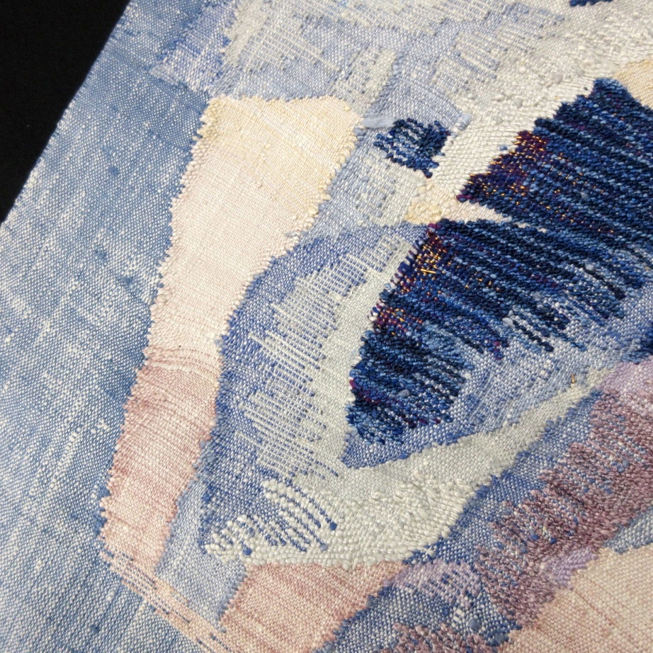 薄いブルーベースのざっくり紬地に抽象模様がカジュアル♪