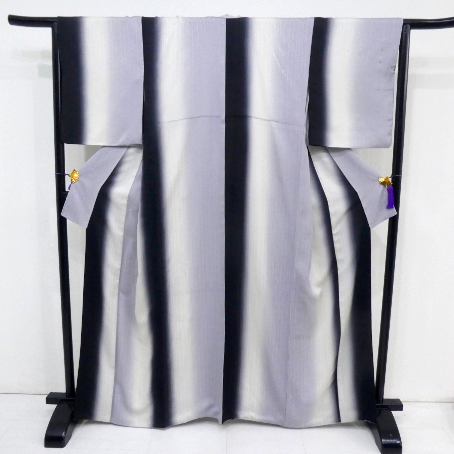 〓雅星〓美品!!モノトーン*縦暈し グラデーション♪小紋 正絹袷 裄64丈165ロング