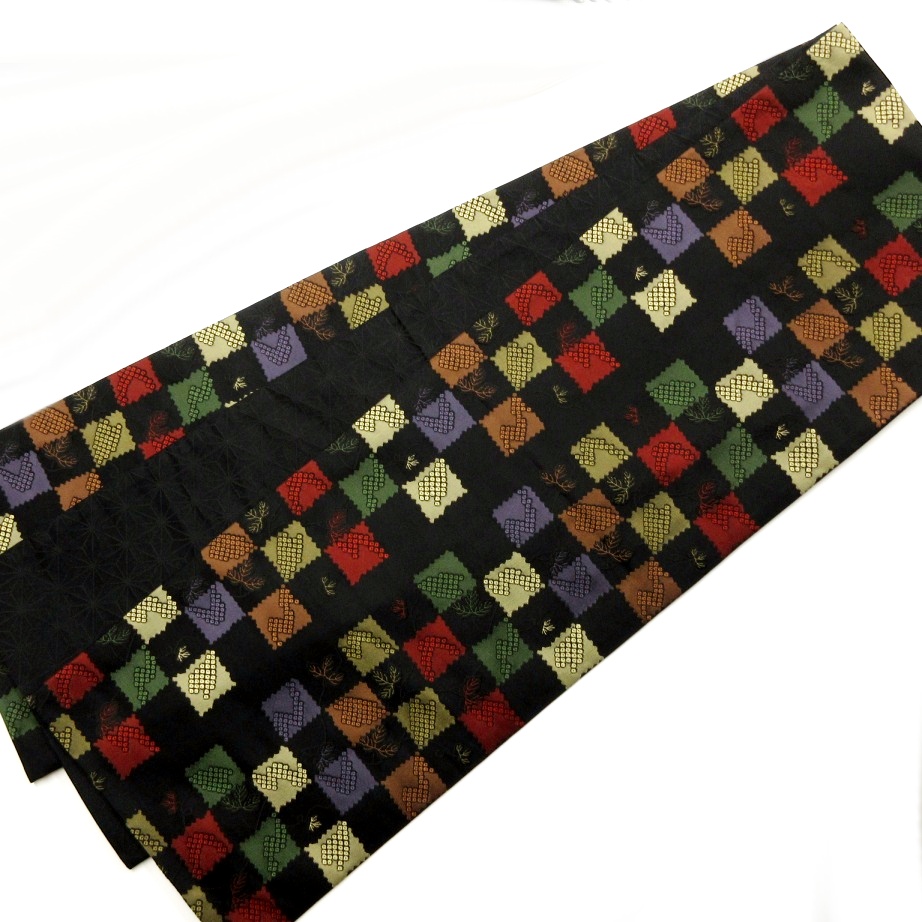 ■雅星■美品!!ブラック*横段吉祥文♪長尺 全通 洗える《京袋帯》 販売価格 19,800円 (税込) 購入数 \送料無料/ カートに入れる この商品について問い合わせる お気に入り 特定商取引法に基づく表記 商品詳細 状態ランク: ★★★★ 京袋帯は、普通の袋帯に比べ短く、名古屋帯と同じように結ぶ帯です。 小紋、紬、ウールなどの普段着に合わせて頂けます。 ブラックベースに市松に葉模様、 多色使いですが色味を抑えてありますので派手さはなく使いやすいです。 400cm弱の長尺ですし、全通柄なので柄出しに困ることもなく角出し結びも簡単◎ 綺麗目な正統派からカジュアルコーデまで幅広く楽しめる京袋帯です。 目立つシミ・汚れのない綺麗なお品です! 帯のみの価格で、着物・小物は含まれておりません。 サイズ・素材 長さ 31cm×397cm 素材 正絹 状態ランクについて ★★★★★ 超美品・新品・未使用品です。 ★★★★ 中古品ですがダメージの無いお品です。 ★★★ 薄ジミなどがありますが着用時には目立ちません。 ★★ 工夫次第で十分着用可能なお買い得品です ★ 大きめのシミがありますので、リメイク材料等にどうぞ。