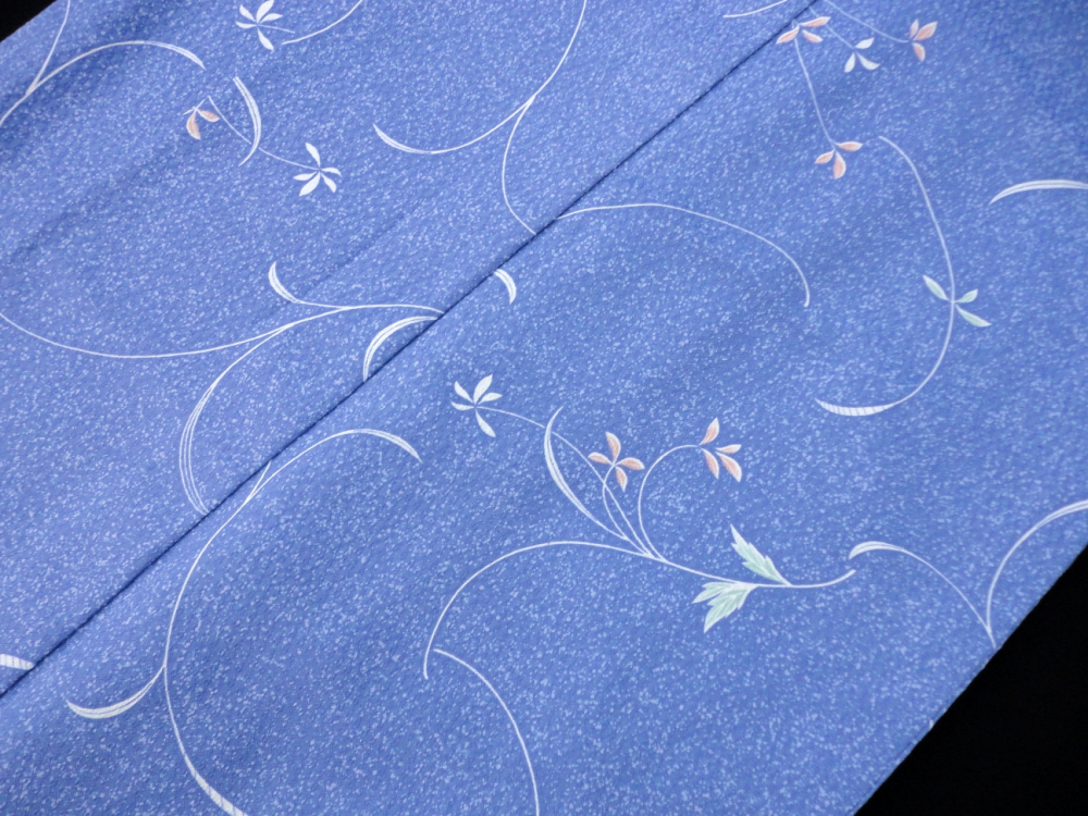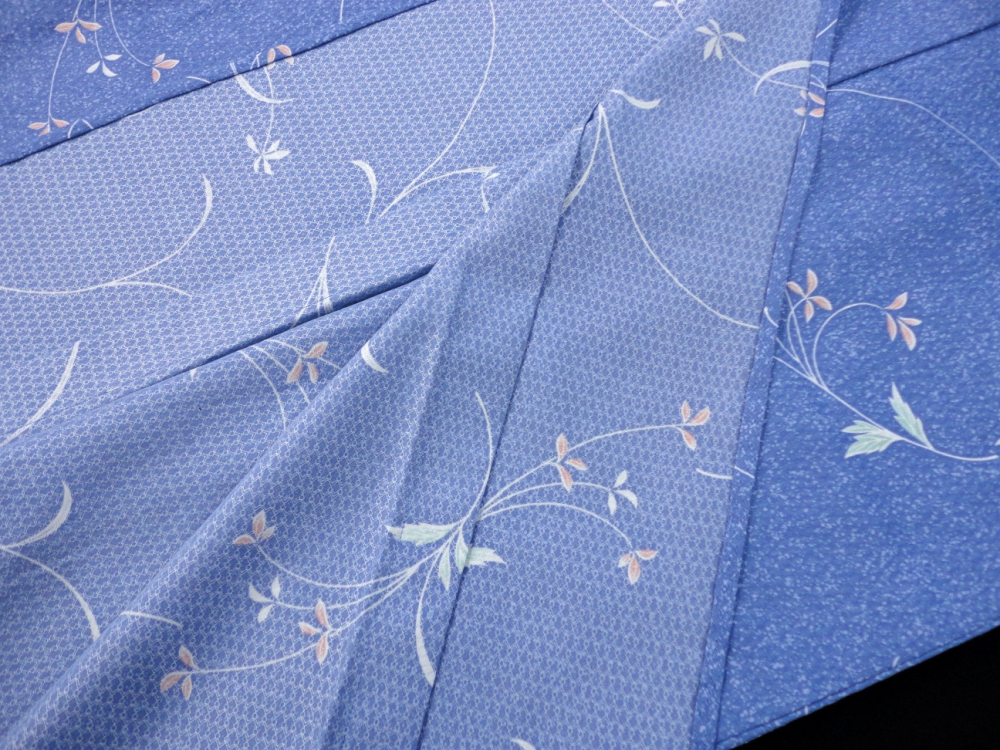 ○雅星○美品!!ブルー*散らし 草花文♪洗える小紋 単衣 裄65丈153