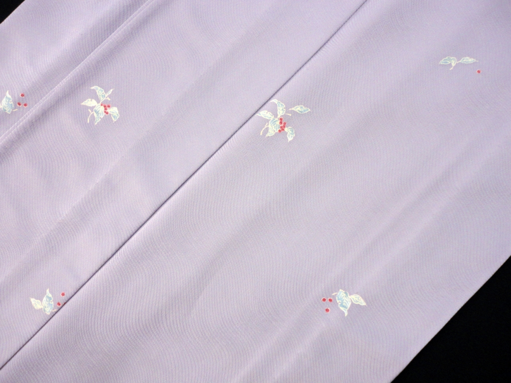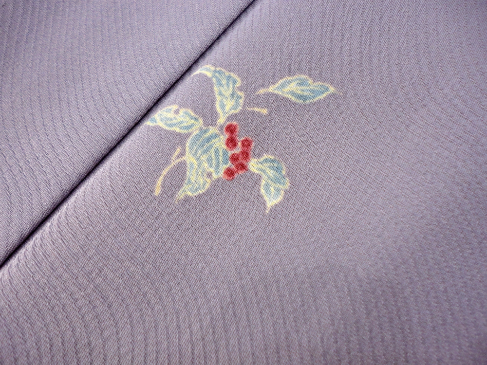 ○雅星○超美!!ラベンダー*木の実♪洗える小紋 単衣 裄62.5丈156