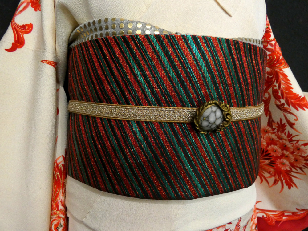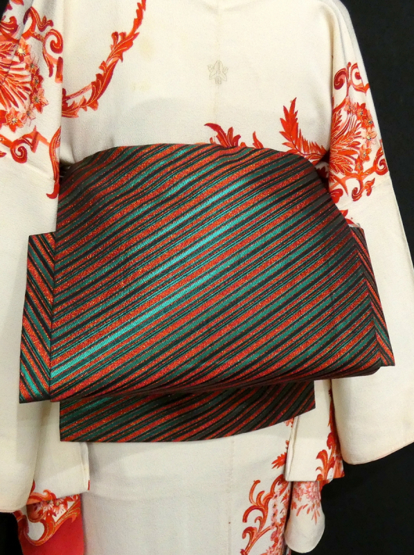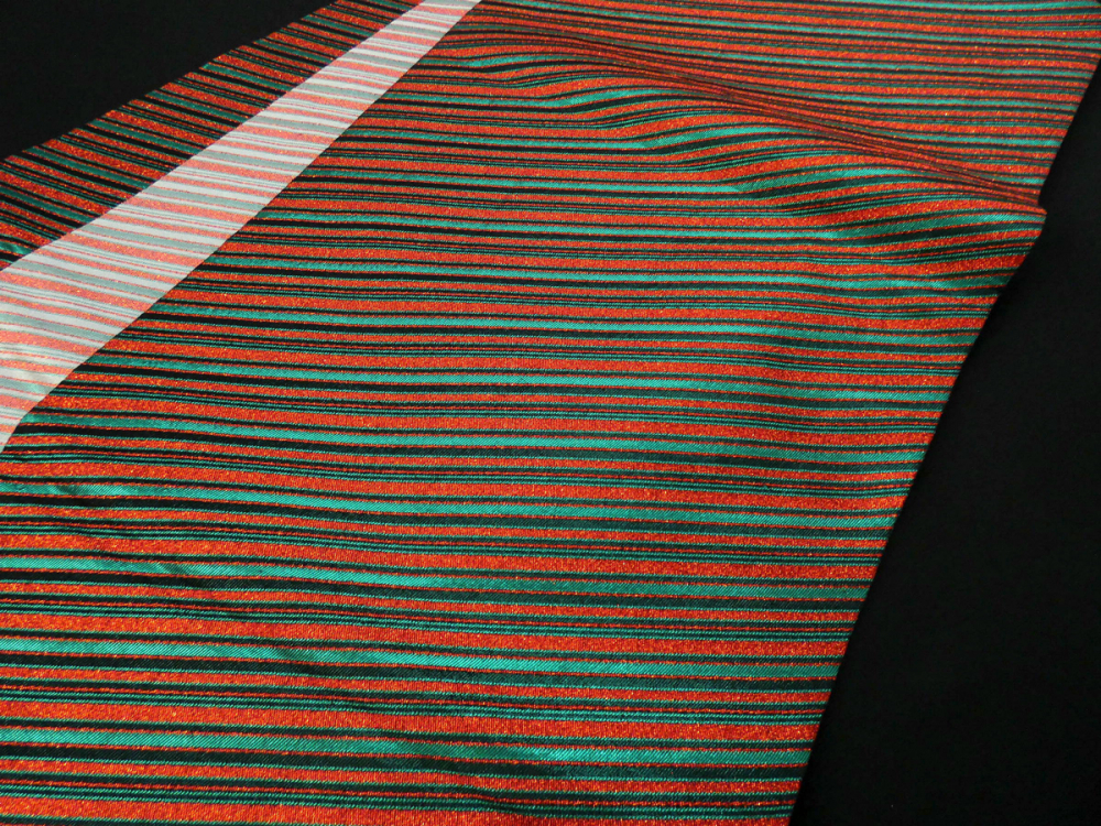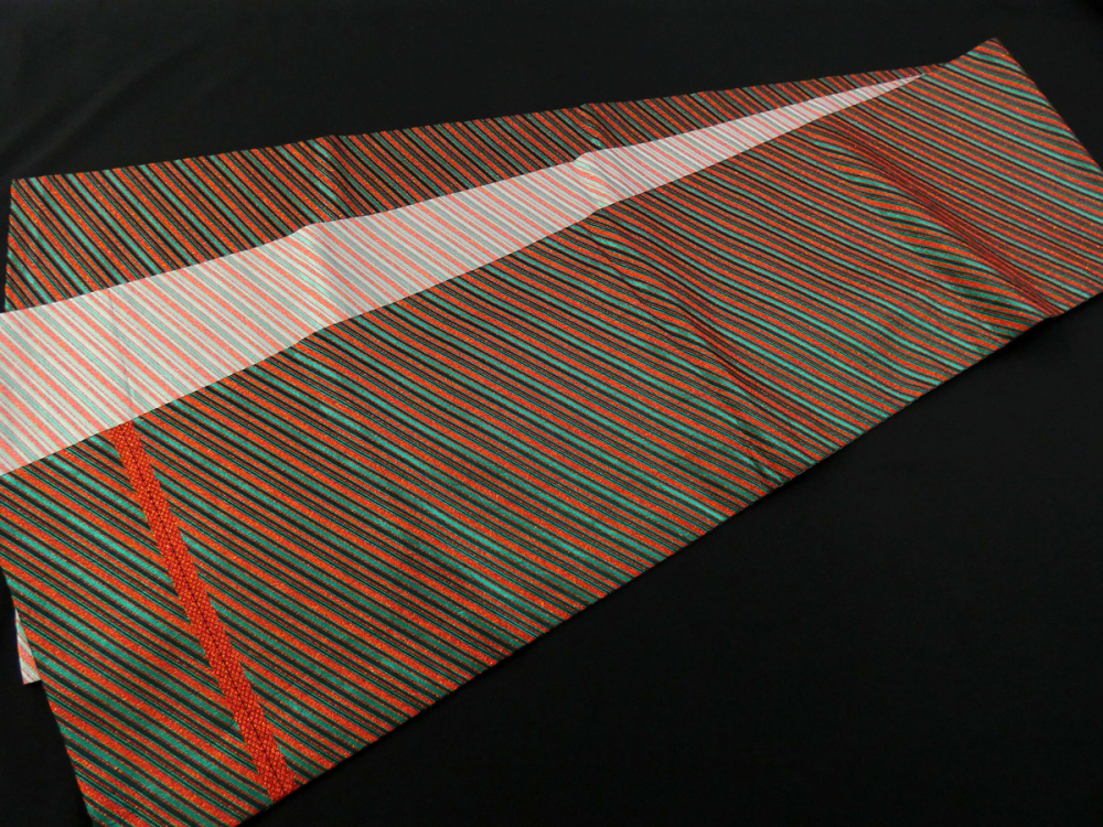新着商品◆雅星◆超美!!レッド×グリーン*箔織 斜め縞 正絹六通《袋帯》