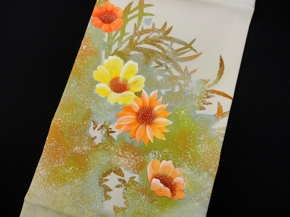 ○雅星○良品!!グレージュ*ガーベラ♪塩瀬 正絹九寸 染め《名古屋帯》 販売価格 22,800円 (税込) 購入数 \送料無料/ カートに入れる この商品について問い合わせる お気に入り 特定商取引法に基づく表記 商品詳細 状態ランク: ★★★ するりと滑らかな手触りの塩瀬地です。 グレージュベースに色鮮やかなガーベラが上品な華やかさ♪ 綺麗目な正統派からカジュアルスタイルまで幅広い着こなしで楽しめる九寸名古屋帯です。 画像の様に薄シミが見られますがいずれも隠れる部分なので全く気になりませんでした。 帯のみの価格で、着物・小物は含まれておりません。 サイズ・素材 長さ 30.5cm×353cm 素材 正絹 状態ランクについて ★★★★★ 超美品・新品・未使用品です。 ★★★★ 中古品ですがダメージの無いお品です。 ★★★ 薄ジミなどがありますが着用時には目立ちません。 ★★ 工夫次第で十分着用可能なお買い得品です ★ 大きめのシミがありますので、リメイク材料等にどうぞ。