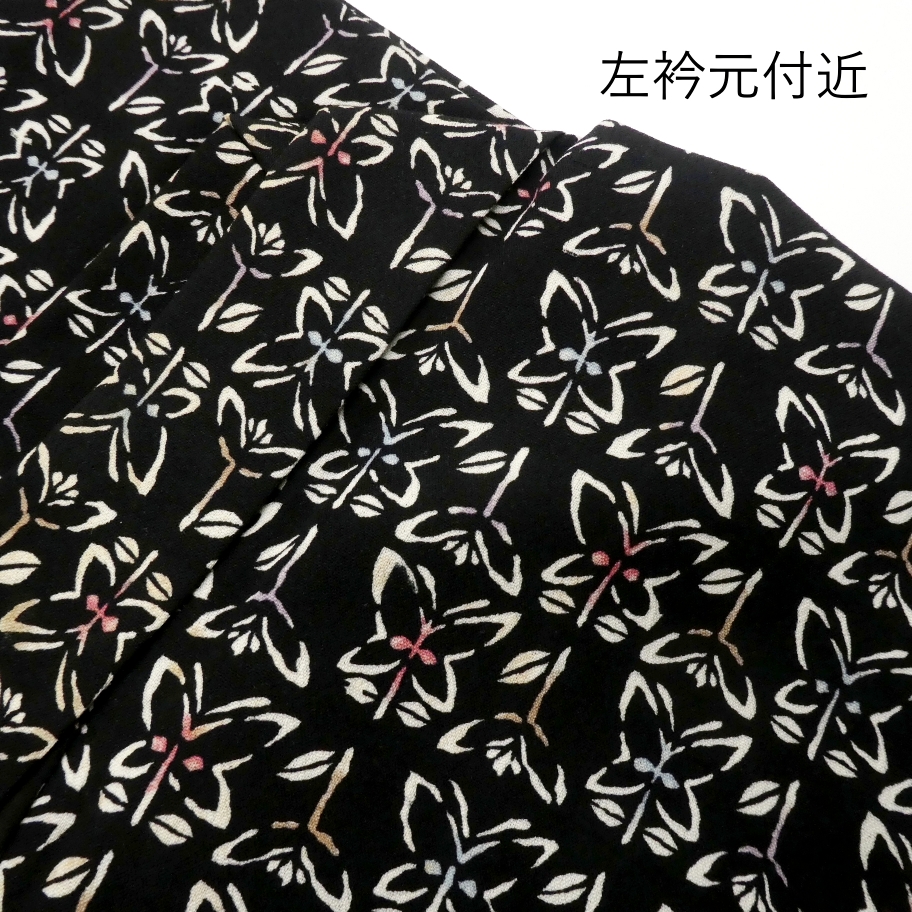 〓雅星〓良品!!ブラック*フラワー♪ウール単衣 裄61.5丈143 販売価格 9,800円 (税込) 購入数 \送料無料/ カートに入れる この商品について問い合わせる お気に入り 特定商取引法に基づく表記 コーディネートで使用している商品 ★雅星本店オリジナル★新品【クロコドット】スチール*リバーシブル《半幅帯》 16,800円(税込) ★雅星本店オリジナル★新品!!ブラック*シマシマ 銀通し 帯揚げ 正絹 【クリックポスト発送】 15,400円(税込) ★雅星本店オリジナル★新品*リバーシブル 縁あり三分紐【クリックポスト発送】 6,600円(税込) 商品詳細 状態ランク: ★★★ ブラックベースにレトロポップな花模様が可愛いウール着物。 部屋着やワンマイル着物に最適な1枚です♪ 洋服mixであえて短めに着こなすのもお洒落ですね。 《単衣・バチ衿》身長〜148cm位までの方にオススメです。 画像のような薄シミがちょこちょこありますが、白地部分が少ないので着後は目立ちにくく感じました。 ぐっとお値下げしていますので、お気軽着として如何でしょうか。 着物のみの価格で、帯・小物は含まれておりません。 サイズ・素材 裄 61.5cm 肩身丈 143cm 袖丈 42cm 袖幅 31.5cm 前幅 22.5cm 後ろ幅 28.5cm 内揚げ 0cm 縫込み(袖側) 4.5cm 縫込み(肩側) 4.5cm 素材 ウール 状態ランクについて ★★★★★ 超美品・新品・未使用品です。 ★★★★ 中古品ですがダメージの無いお品です。 ★★★ 薄ジミなどがありますが着用時には目立ちません。 ★★ 工夫次第で十分着用可能なお買い得品です ★ 大きめのシミがありますので、リメイク材料等にどうぞ。 _woo _hito