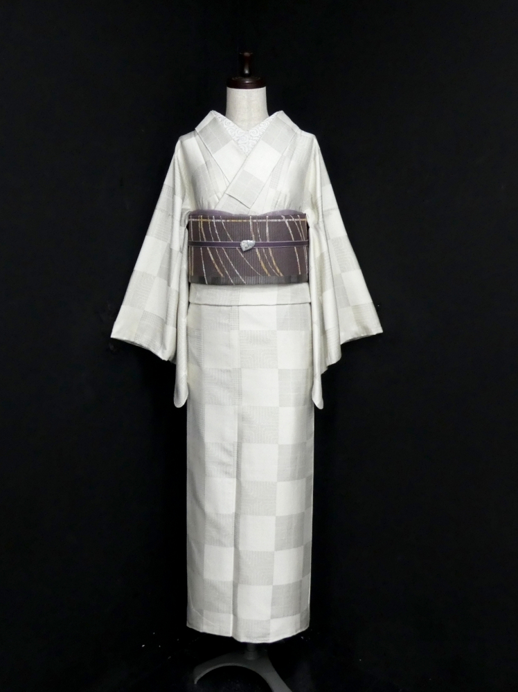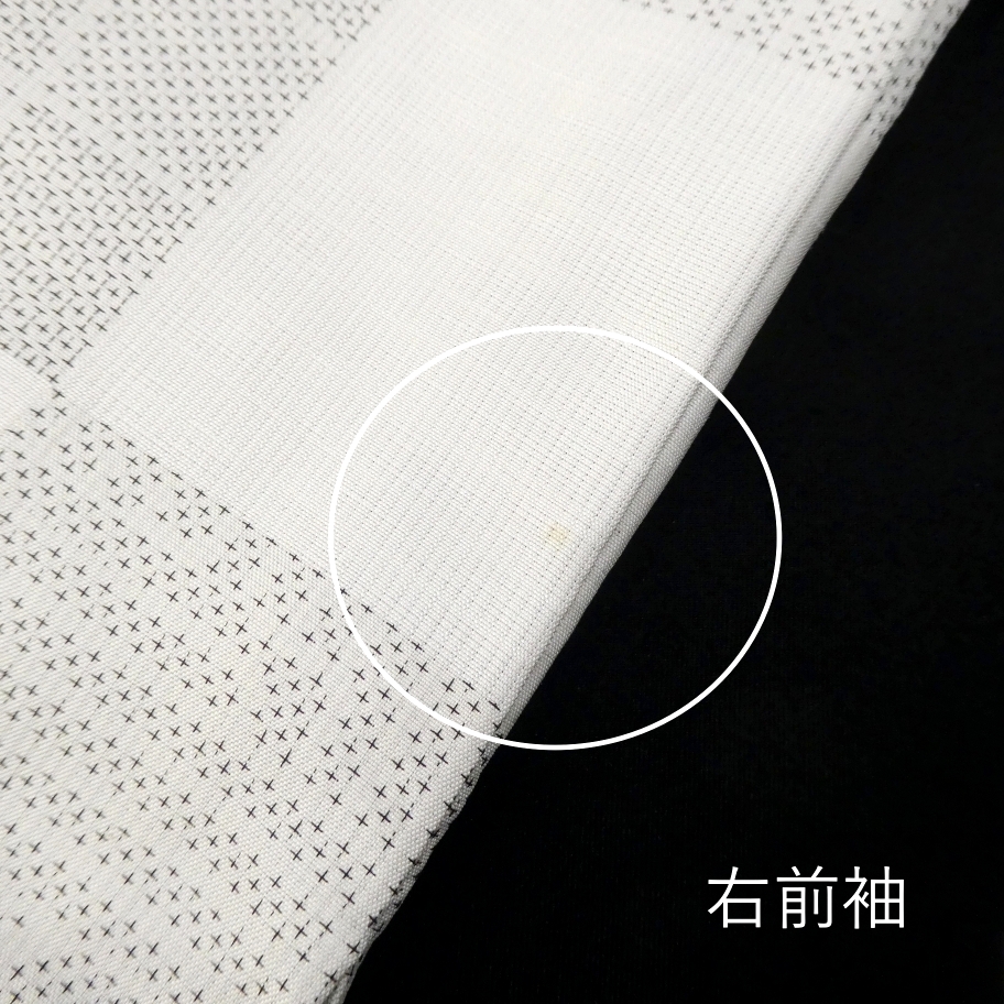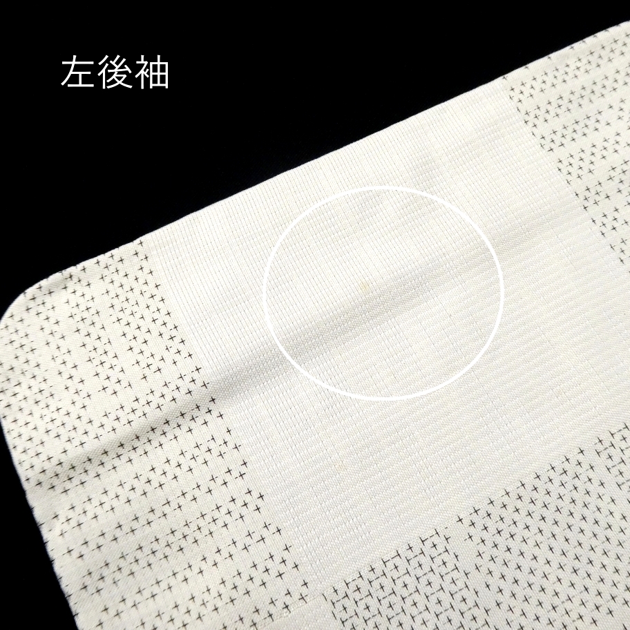 〓雅星〓未使用美品!!オフ白*市松文♪お召し 正絹袷 裄63丈157 販売価格 49,800円 (税込) sold out この商品について問い合わせる お気に入り 特定商取引法に基づく表記 コーディネートで使用している商品 〓雅星〓超美!!鳩羽鼠色【川島織物】ツートン 曲線ライン 洗える《京袋帯》 22,800円(税込) ★雅星本店オリジナル★新品!!アメジスト*シマシマ 銀通し 帯揚げ 正絹 【クリックポスト発送】 15,400円(税込) ★雅星本店オリジナル★新品!!アメジスト*帯締め 房付き四分紐 正絹【クリックポスト発送】 14,800円(税込) 商品詳細 状態ランク: ★★★ シボのない、しなやかな手触りのお召し地。 オフ白ベースに様々な割付文がデザインされた市松が小粋な印象。 柄は異なりますが、市松の並びが揃った丁寧なお仕立てなのですっきりとした着姿。 人と差のつく、ワンランク上の大人の普段着におススメな逸品です。 《袷・広衿》身長152〜162cm位までの方にオススメです。 全体的に何となくくすみを感じるのですがはっきり判別が出来ない位軽度です。 画像のような点シミが数か所ありますが、しつけ糸もついており着用感もないので保管時に付いたものだと判断致しました。 その分お値下げしていますので、色柄を気に入ってくださった方に是非! 着物のみの価格で、帯・小物は含まれておりません。 サイズ・素材 裄 63cm 肩身丈 157cm 袖丈 49.5cm 袖幅 33cm 前幅 24.5cm 後ろ幅 29.5cm 内揚げ 4cm 縫込み(袖側) 2.5cm 縫込み(肩側) 2cm 素材 正絹 状態ランクについて ★★★★★ 超美品・新品・未使用品です。 ★★★★ 中古品ですがダメージの無いお品です。 ★★★ 薄ジミなどがありますが着用時には目立ちません。 ★★ 工夫次第で十分着用可能なお買い得品です ★ 大きめのシミがありますので、リメイク材料等にどうぞ。