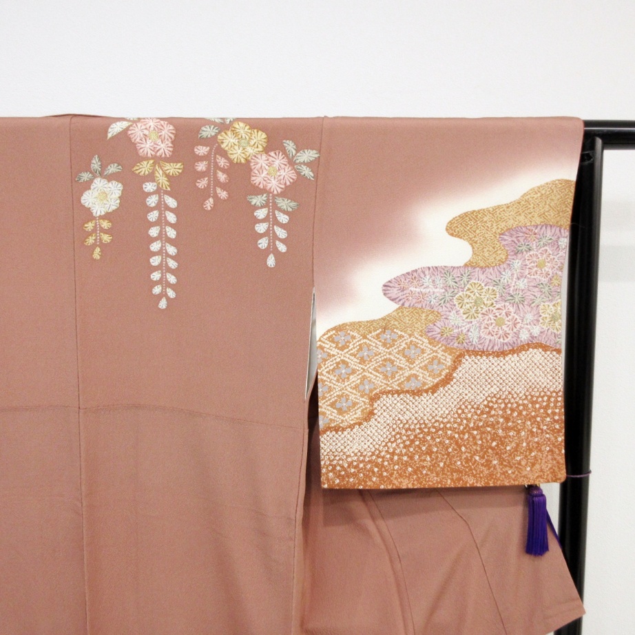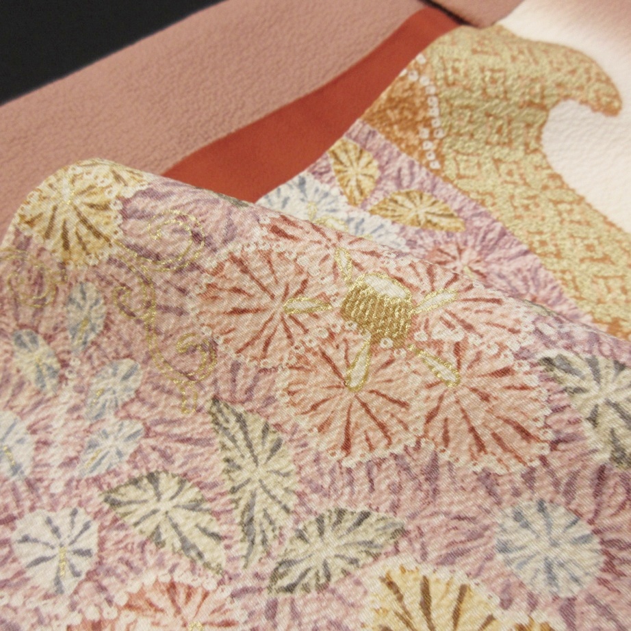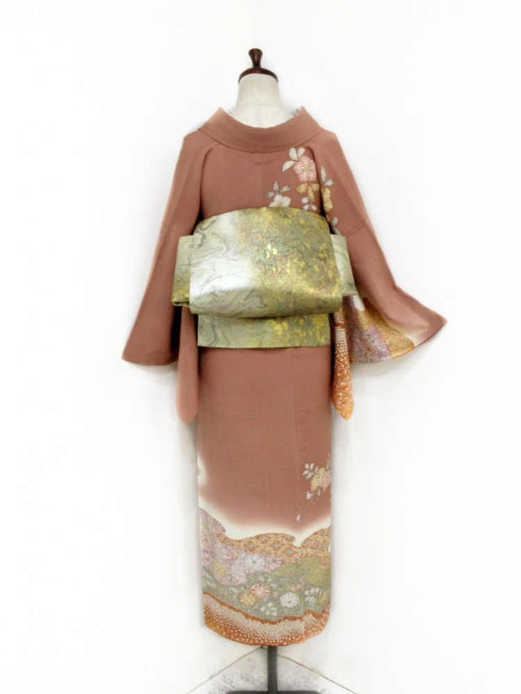 ■雅星■超美!!ときがら茶*霞 四季の花♪縮緬 付下げ訪問着 正絹袷 裄62丈152 販売価格 42,800円 (税込) 購入数 \送料無料/ カートに入れる この商品について問い合わせる お気に入り 特定商取引法に基づく表記 コーディネートで使用している商品 ■雅星■超美!!ゴールド系*墨流し 切り紙散らし 焼箔暈し♪正絹六通《袋帯》 34,800円(税込) ★雅星本店オリジナル★新品!!プラチナ*シマシマ 銀通し 帯揚げ 正絹 【クリックポスト発送】 15,400円(税込) ★雅星本店オリジナル★新品!!プラチナ*帯締め 房付き四分紐 正絹【クリックポスト発送】 13,800円(税込) 商品詳細 状態ランク: ★★★★★ ふっくらとした縮緬地、落ち感の綺麗な正絹地です。 灰みがかった桃色ベース、四季の花をあしらった霞文が上品な印象。 可憐且つ上品な華やかさが素敵!流行を問わず幅広い世代に愛されています。 入・卒業式の付き添いはもちろん、様々なフォーマルシーンでご着用頂ける付下げ訪問着です。 《袷・広衿》身長〜157cm位までの方にオススメです。 シミ汚れの無い大変綺麗な未使用品です。 着物のみの価格で、帯・小物は含まれておりません。 サイズ・素材 裄 62cm 肩身丈 152cm 袖丈 48.5cm 袖幅 32cm 前幅 23cm 後ろ幅 28.5cm 内揚げ 20cm 縫込み(袖側) 4cm 縫込み(肩側) 5.5cm 素材 正絹 状態ランクについて ★★★★★ 超美品・新品・未使用品です。 ★★★★ 中古品ですがダメージの無いお品です。 ★★★ 薄ジミなどがありますが着用時には目立ちません。 ★★ 工夫次第で十分着用可能なお買い得品です ★ 大きめのシミがありますので、リメイク材料等にどうぞ。 _fo