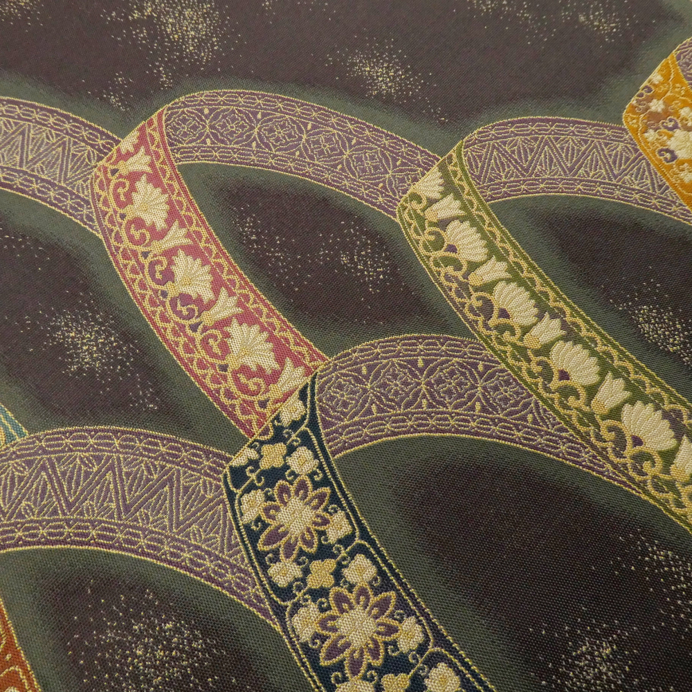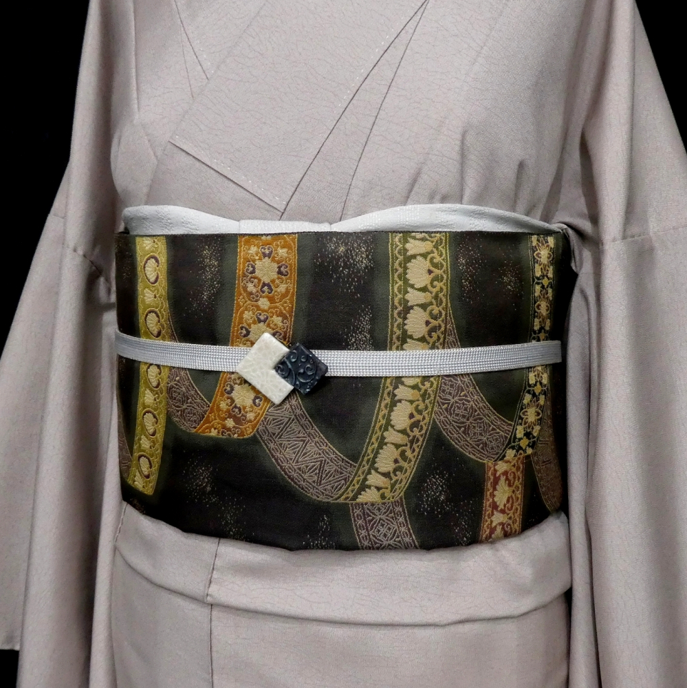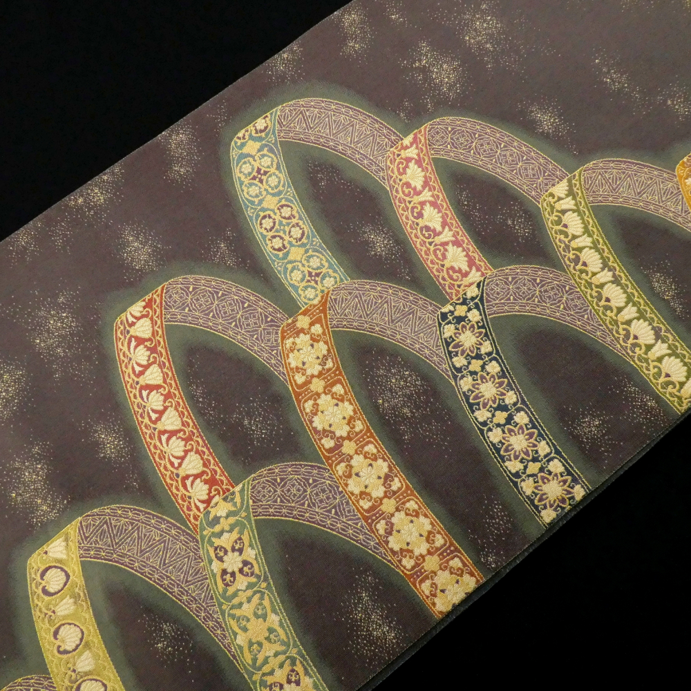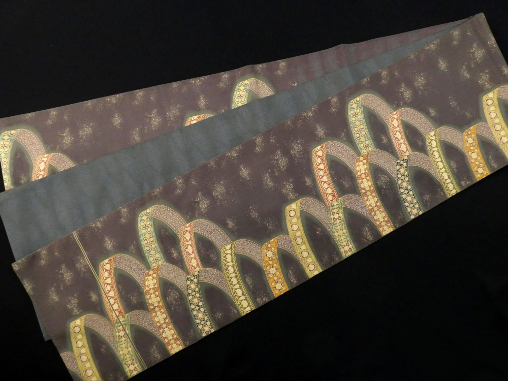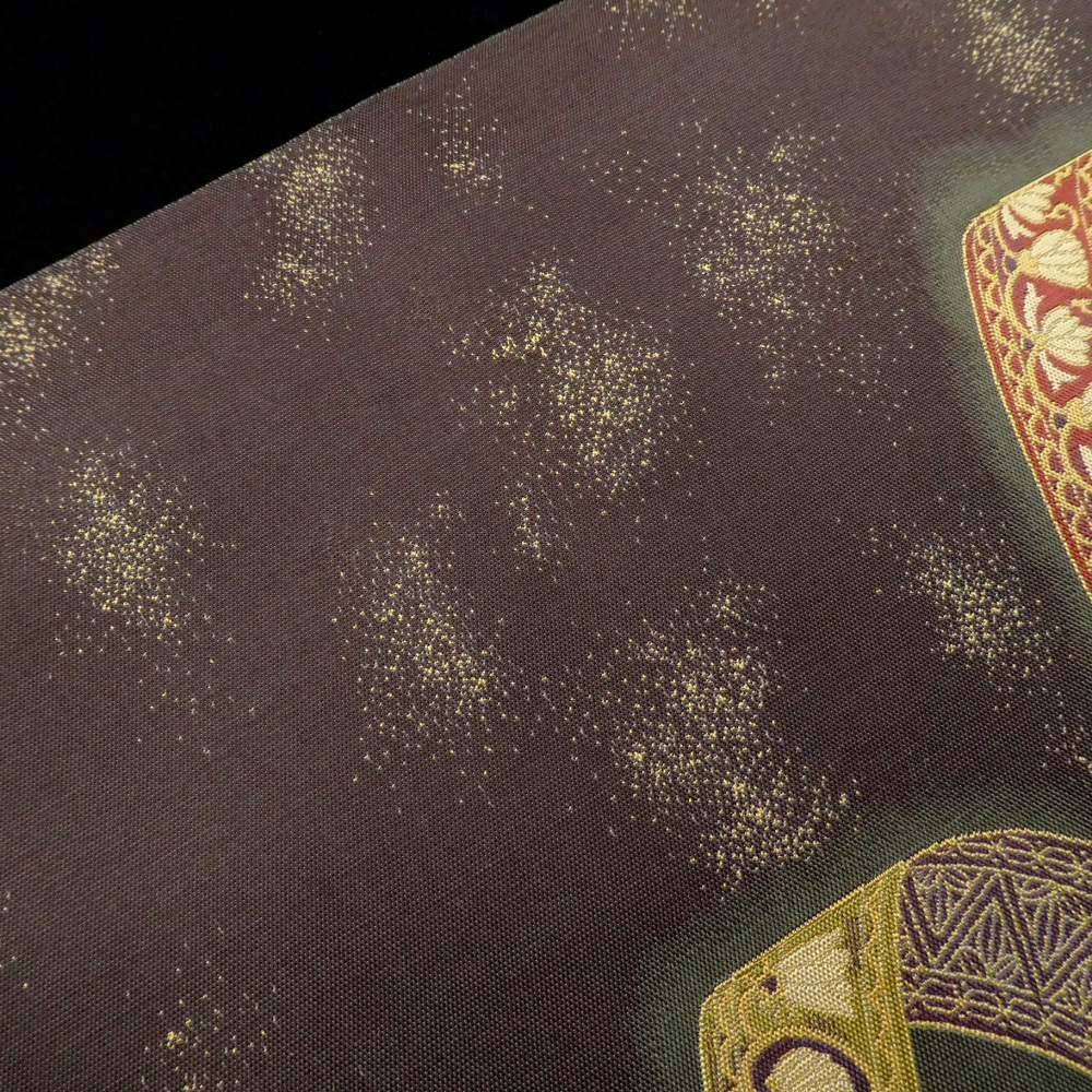 〓雅星〓美品!!藍媚茶色*麹塵染 蔓帯文♪正絹六通《洒落袋帯》 販売価格 34,800円 (税込) 購入数 \送料無料/ カートに入れる この商品について問い合わせる お気に入り 特定商取引法に基づく表記 商品詳細 状態ランク: ★★★★ 古来より皇室のみ用いることを許された色、麹塵(きくじん)。 麹塵染めは普段は暗い緑色に見えますが、照明(白熱電灯)の下では少し赤み帯びて見える不思議な織りです。 リボンテープのような蔓帯文があしらわれ、落ち着きがありつつ上品な印象。 人と差のつくワンランク上の着こなしが叶う上質な洒落袋帯です。 ※麹塵の特性により照明下では実物の色味を表現するのが困難なため、普段の暗い緑の色味を追加画像に添付しています。 未使用品ではありませんが、目立つシミ・汚れのない綺麗なお品です。 帯のみの価格で、着物・小物は含まれておりません。 サイズ・素材 長さ 31cm×445cm 素材 正絹 状態ランクについて ★★★★★ 超美品・新品・未使用品です。 ★★★★ 中古品ですがダメージの無いお品です。 ★★★ 薄ジミなどがありますが着用時には目立ちません。 ★★ 工夫次第で十分着用可能なお買い得品です ★ 大きめのシミがありますので、リメイク材料等にどうぞ。