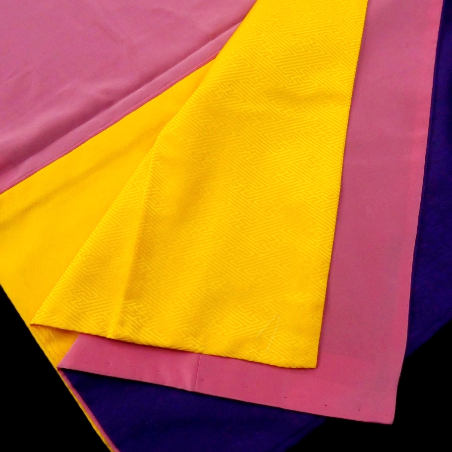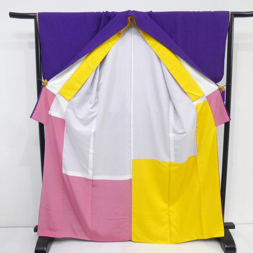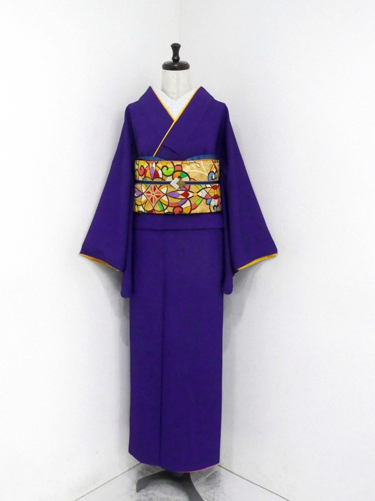 〓雅星〓超美!!グレープ*比翼仕立て風 飾り文入 洗える色無地 袷 裄66.5丈168ロング 販売価格 29,800円 (税込) sold out この商品について問い合わせる お気に入り 特定商取引法に基づく表記 コーディネートで使用している商品 〓雅星〓レトロ!!ゴールデンイエロー*宝相華 オリエンタル♪正絹六通《袋帯》 SOLD OUT ★雅星本店オリジナル★新品!!ピーコック*シマシマ 銀通し 帯揚げ 正絹 【クリックポスト発送】 15,400円(税込) ★雅星本店オリジナル★新品!!ピーコックブルー*帯締め 房付き四分紐 正絹【クリックポスト発送】 13,800円(税込) 商品詳細 状態ランク: ★★★★ 鮮やかな紫色の縮緬、ずっしりと重みのある上質なポリエステル地です。 ピンクの八掛にイエローの比翼が付いているような凝ったデザインで人と差のつくお洒落が楽しめる逸品。 背中には鮮やかな色使いの刺繍で施された花蝶の洒落紋入り。 こだわりの帯や小物もよく映え、着こなしのテイスト選ばず幅広い着こなしが楽しめます♪ 無紋なので小紋と同様のお気軽普段着に最適な色無地です。 《袷・広衿》身長163〜173cm位までの方にオススメです。 目立つシミ・汚れがなく、大変状態の良い綺麗なお品です。 着物のみの価格で、帯・小物は含まれておりません。 サイズ・素材 裄 66.5cm 肩身丈 168cm 袖丈 49cm 袖幅 34cm 前幅 25cm 後ろ幅 30cm 内揚げ 0cm 縫込み(袖側) 1cm 縫込み(肩側) 1.5cm 素材 ポリエステル 状態ランクについて ★★★★★ 超美品・新品・未使用品です。 ★★★★ 中古品ですがダメージの無いお品です。 ★★★ 薄ジミなどがありますが着用時には目立ちません。 ★★ 工夫次第で十分着用可能なお買い得品です ★ 大きめのシミがありますので、リメイク材料等にどうぞ。