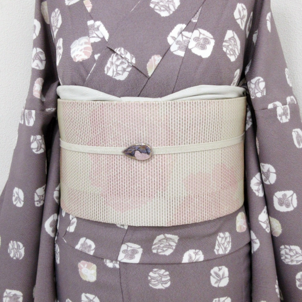 ■雅星■美品!!エクリュ*市松 薔薇♪洗える《京袋帯》 販売価格 17,800円 (税込) 購入数 \送料無料/ カートに入れる この商品について問い合わせる お気に入り 特定商取引法に基づく表記 商品詳細 状態ランク: ★★★★ 京袋帯は、普通の袋帯に比べ短く、名古屋帯と同じように結ぶ帯です。 小紋、紬、ウールなどの普段着に合わせて頂けます。 黄みがかった白や淡いベージュベースにシマシマのステッチ。 ほんのりラメで薔薇文様が浮かび上がるシンプルデザイン。 飽きの来ないベーシックなデザインなので、綺麗目な正統派からカジュアルスタイルまで幅広い着こなしが楽しめる洗える京袋帯です。 目立つシミ・汚れのない綺麗なお品です。 帯のみの価格で、着物・小物は含まれておりません。 サイズ・素材 長さ 31cm×378cm 素材 ポリエステル 状態ランクについて ★★★★★ 超美品・新品・未使用品です。 ★★★★ 中古品ですがダメージの無いお品です。 ★★★ 薄ジミなどがありますが着用時には目立ちません。 ★★ 工夫次第で十分着用可能なお買い得品です ★ 大きめのシミがありますので、リメイク材料等にどうぞ。
